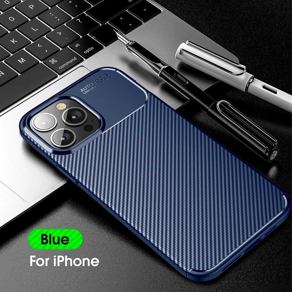 Silicone Carbon Fiber Shockproof Case for iPhone 15 14 13 12 Series