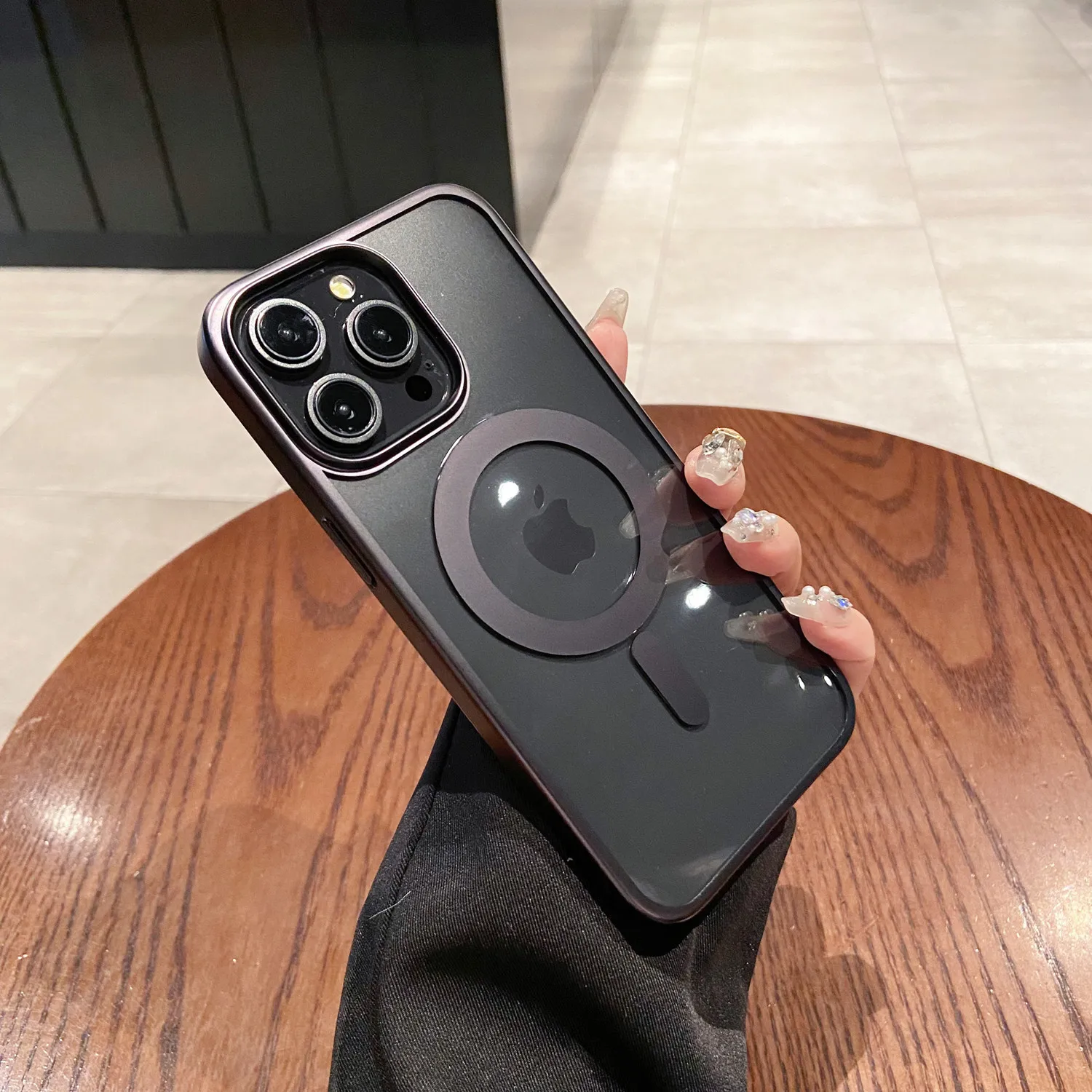 Titanium Color Magnetic Ring Wireless Charging Transparent Case for iPhone 15 series