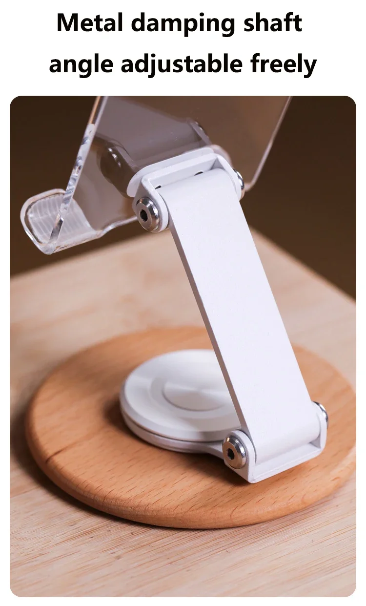 Foldable Transparent Acrylic Smartphone Bracket Rotation Stand With Wood Desk Holder For iPhone Samsung Huawei Xiaomi