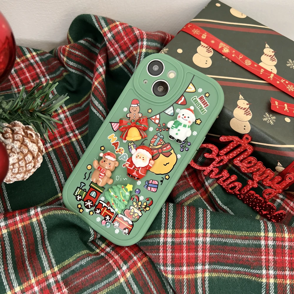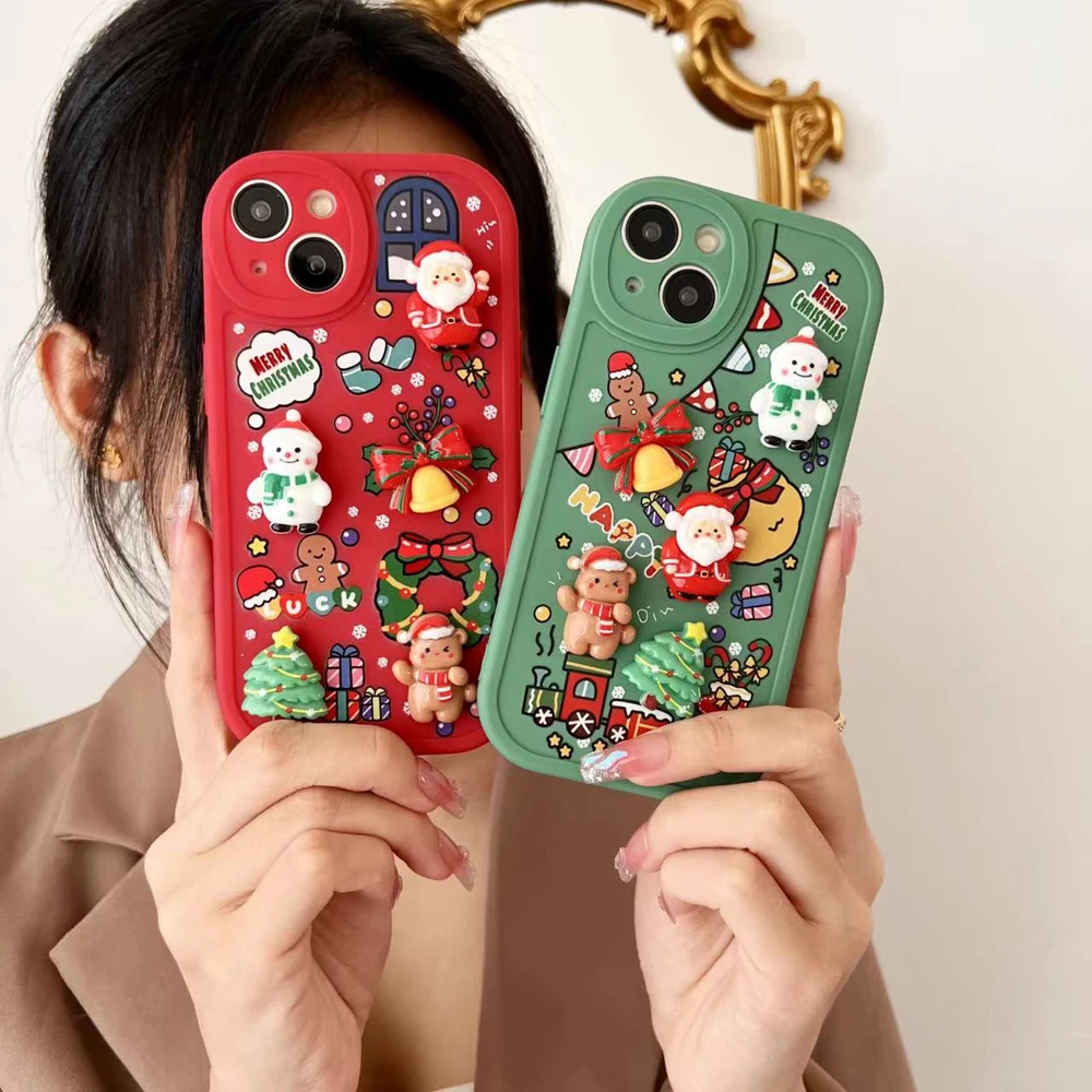 3D Christmas & New Year Santa Claus Elk Snowman Soft Silicone Phone Case For iPhone 15 14 13 12 Series