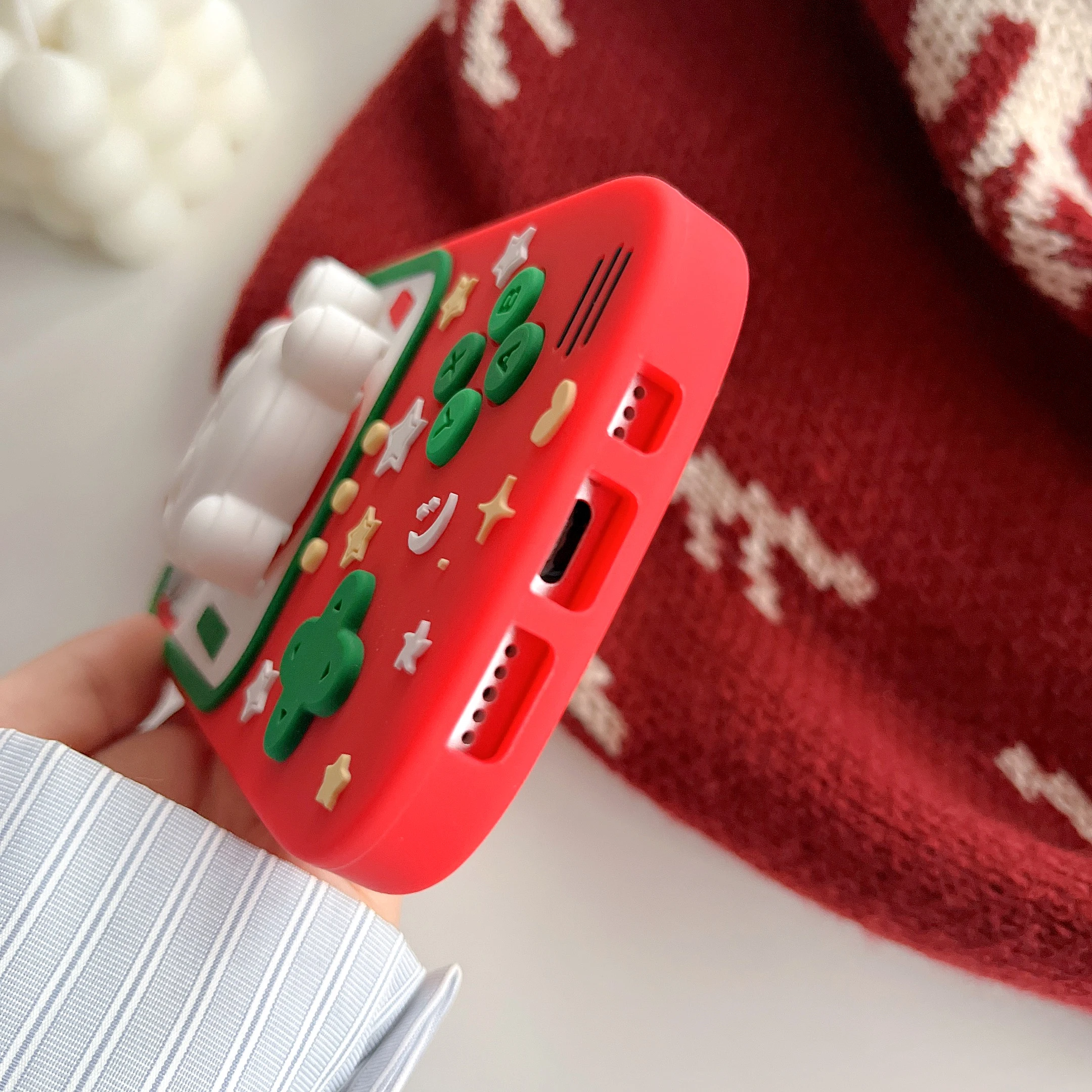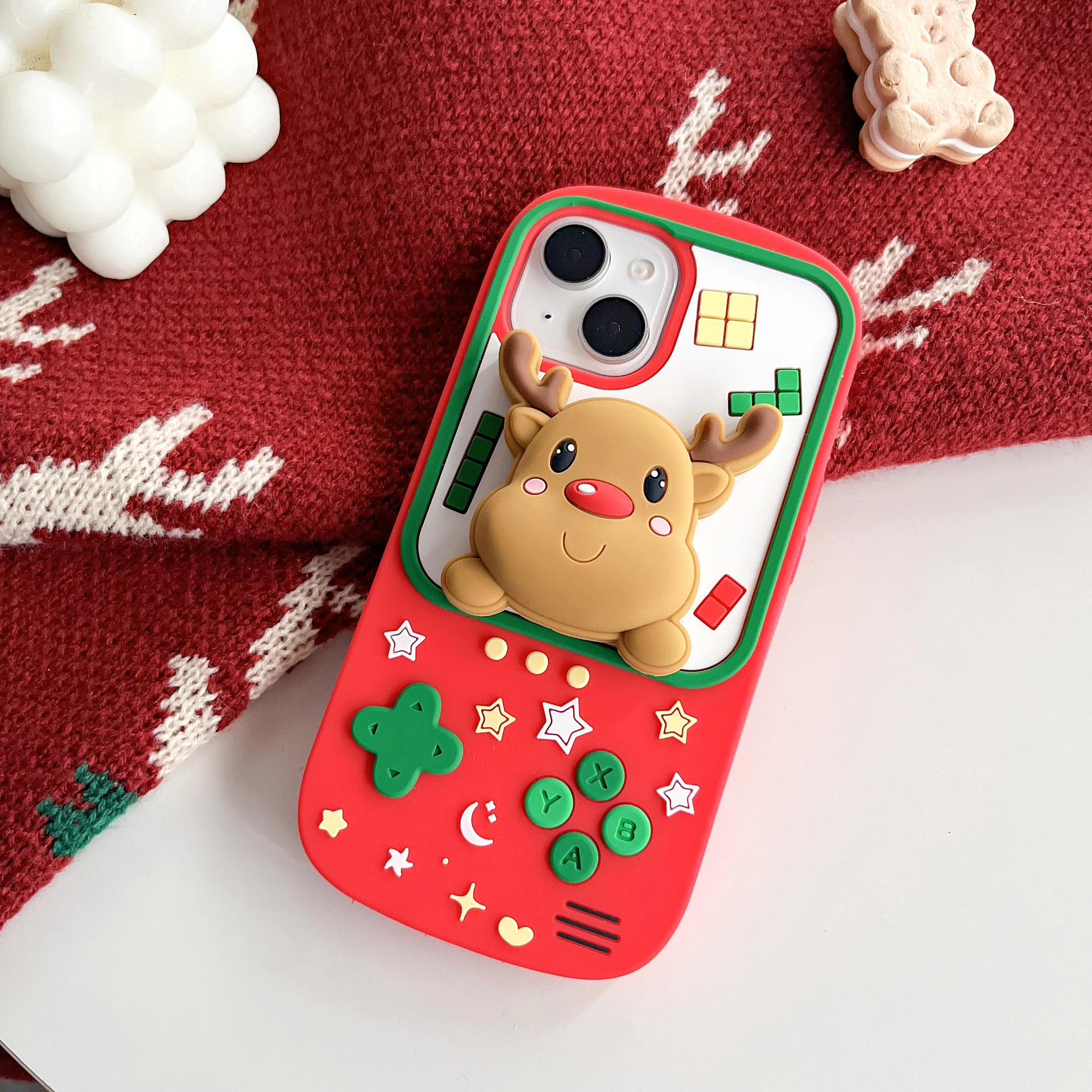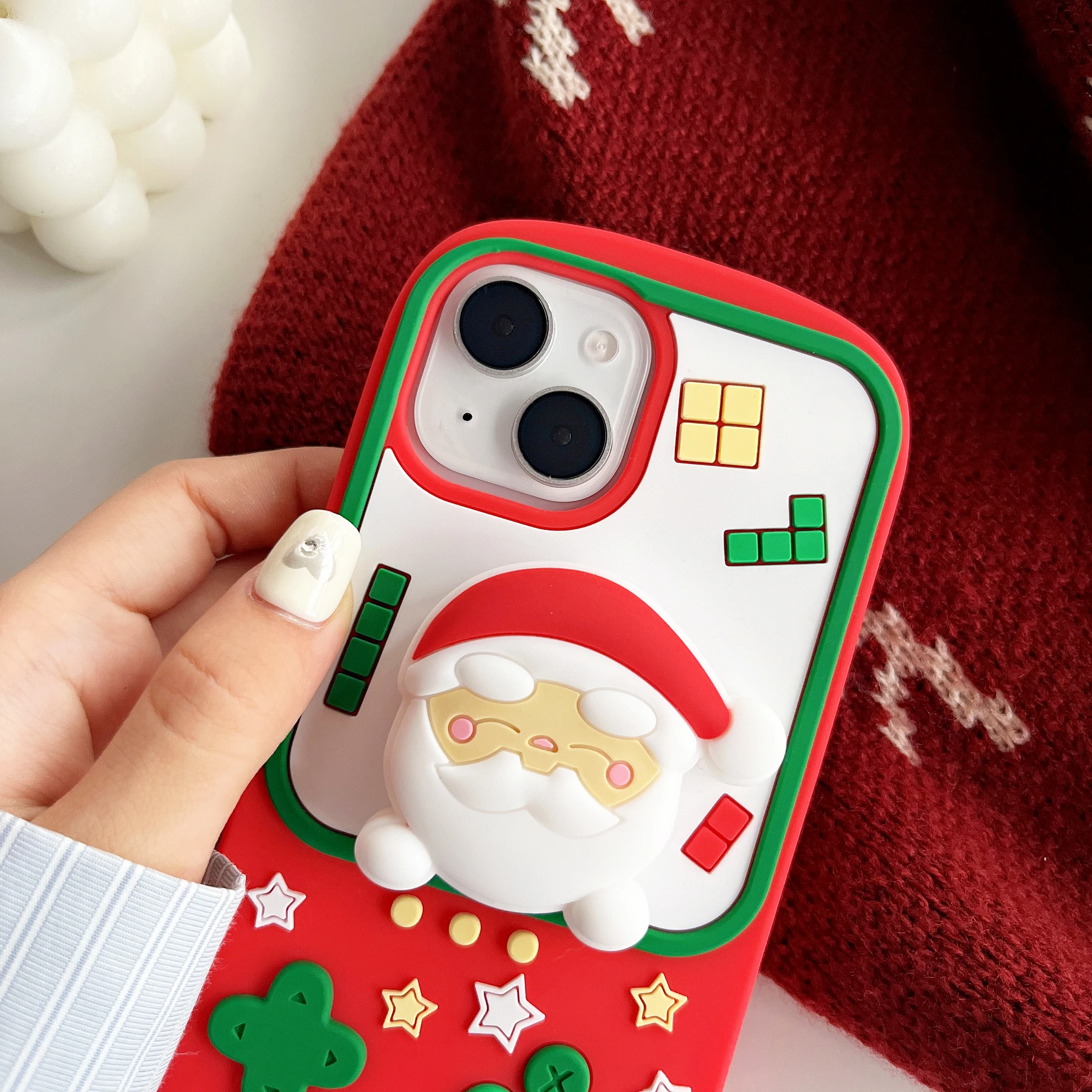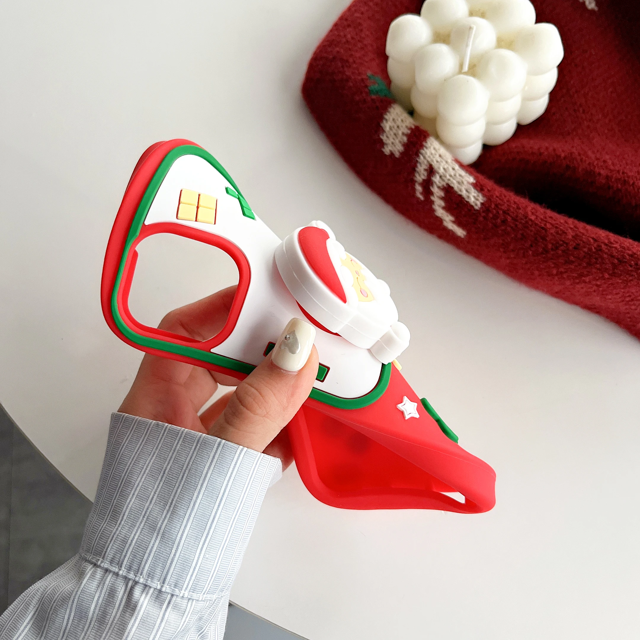 3D Cute Folding Bracket Christmas Elk Deer Santa Claus Soft Case for iPhone 15 14 13 series