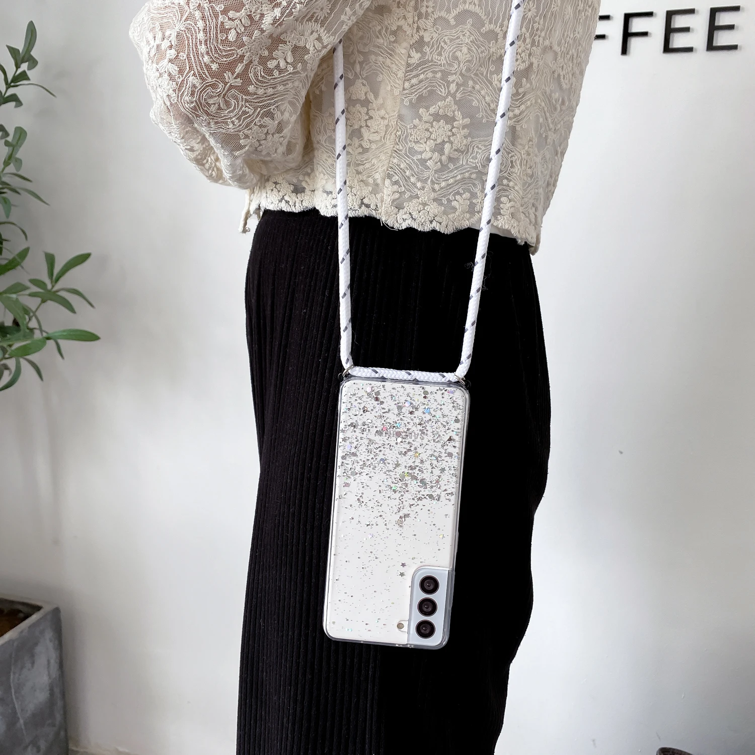 Hang Neck Strap Lanyard Glitter Clear Case For Samsung Galaxy S21 S20 Note 20 Series