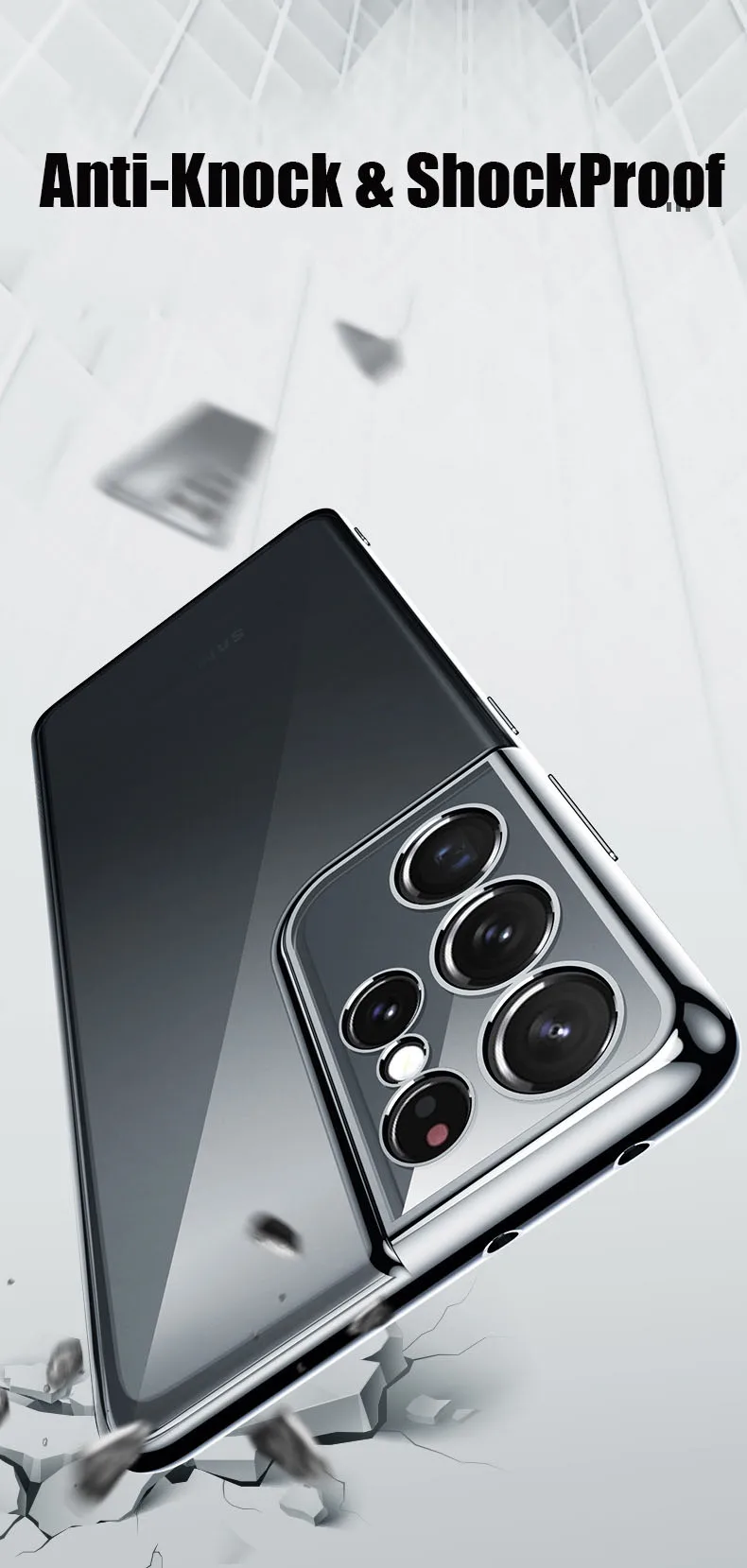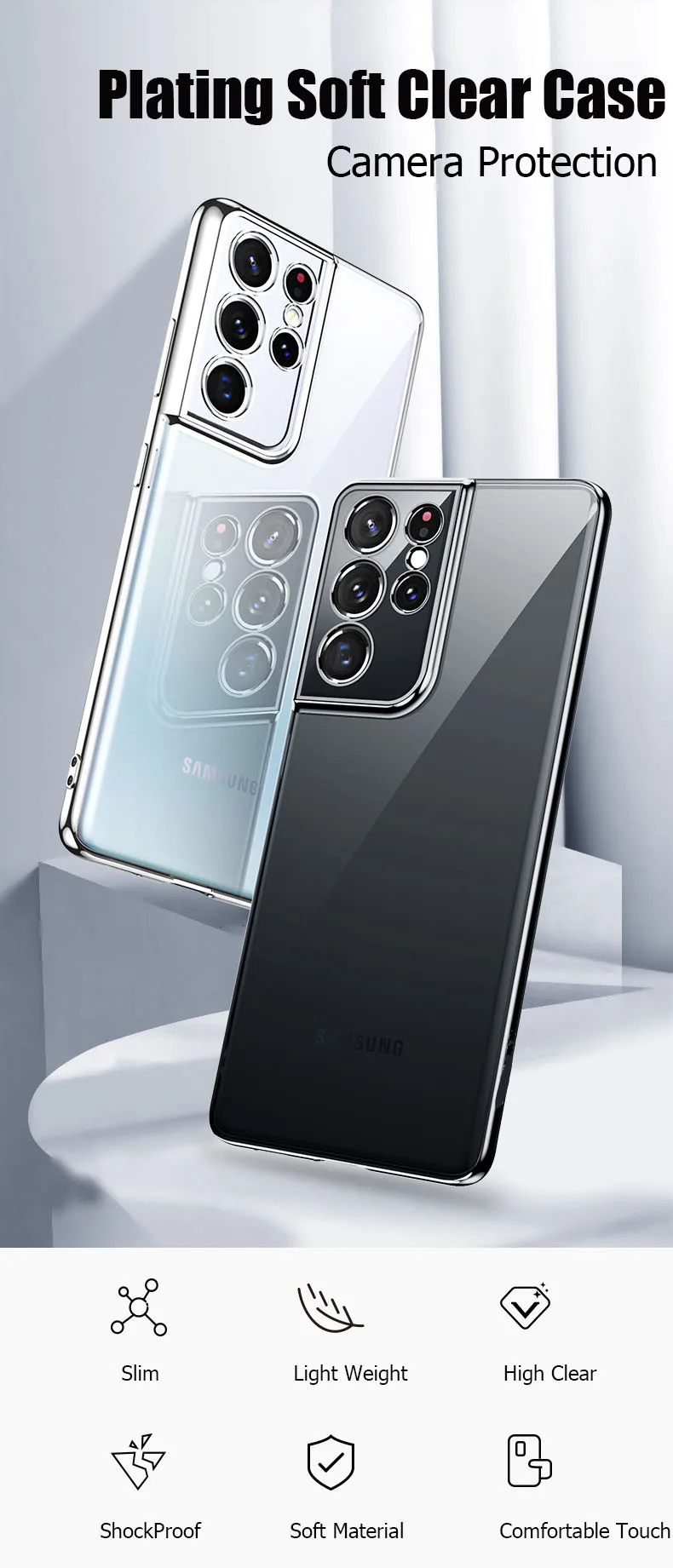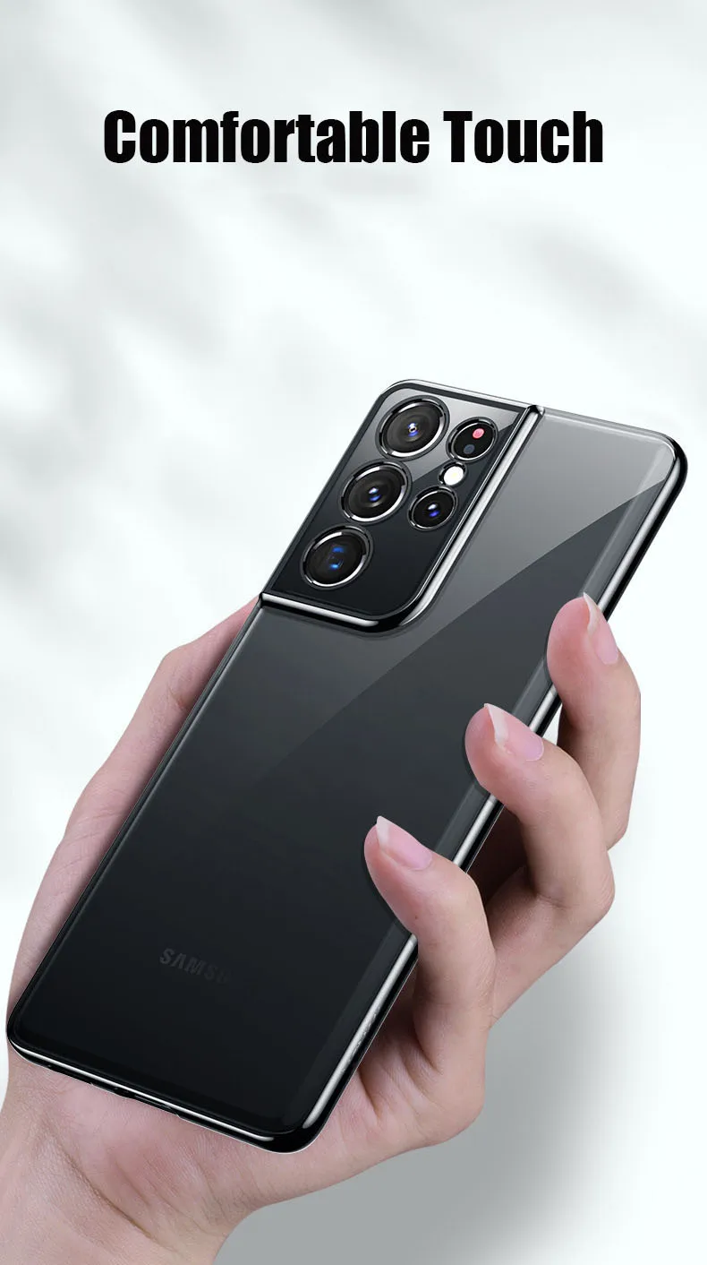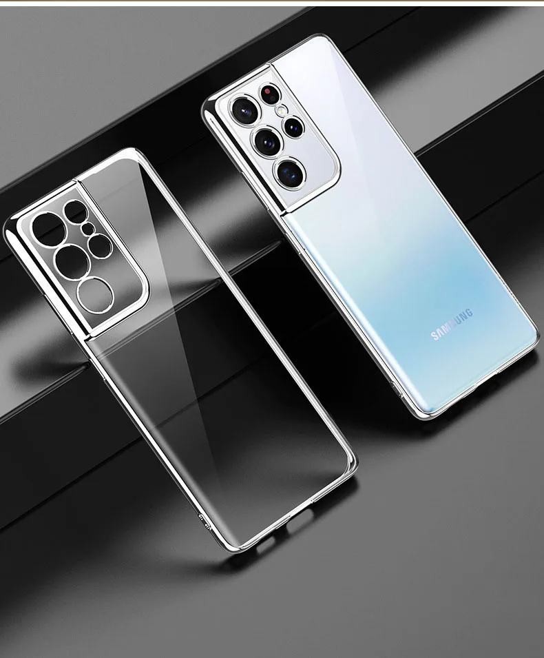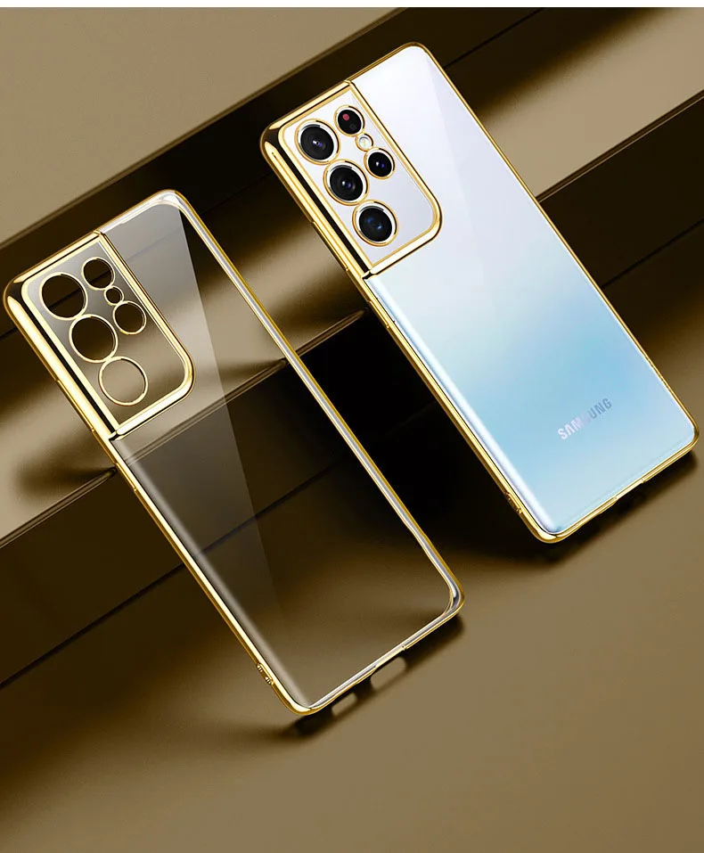 Luxury Plating Soft Clear Camera Protection Phone Case For Galaxy S21 Plus S21 Ultra 5G