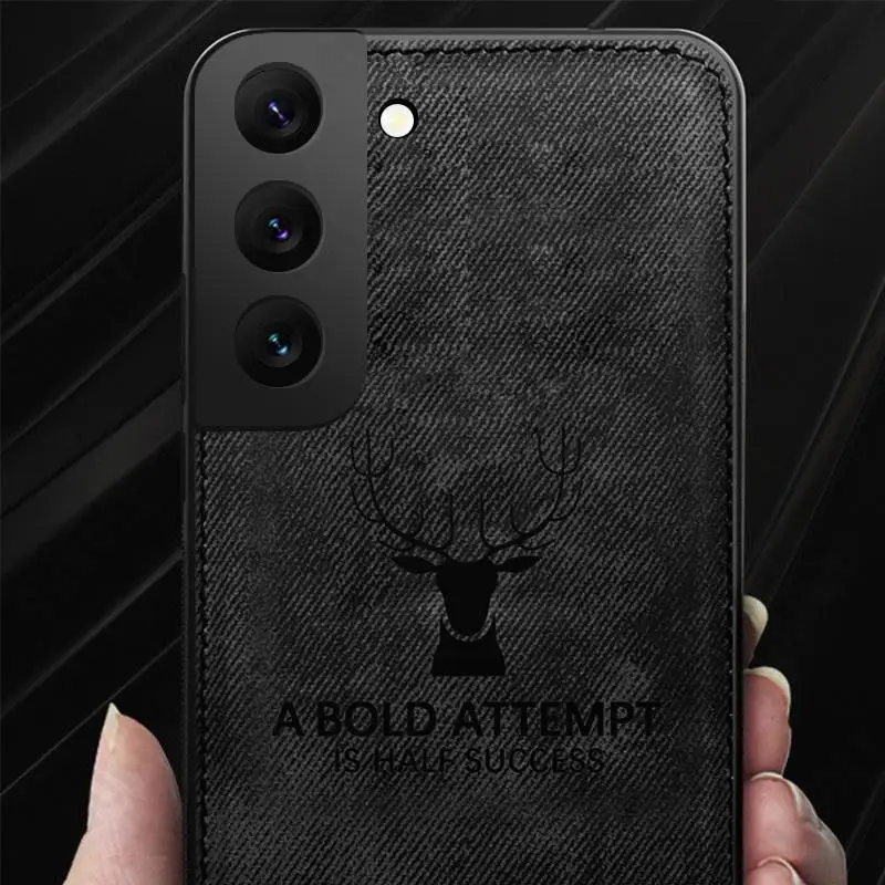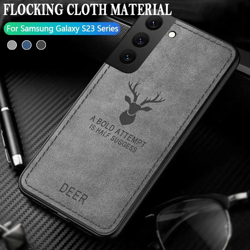Deer Pattern Soft TPU Frame Cloth Texture Case For Samsung Galaxy S23 S22 S21 series