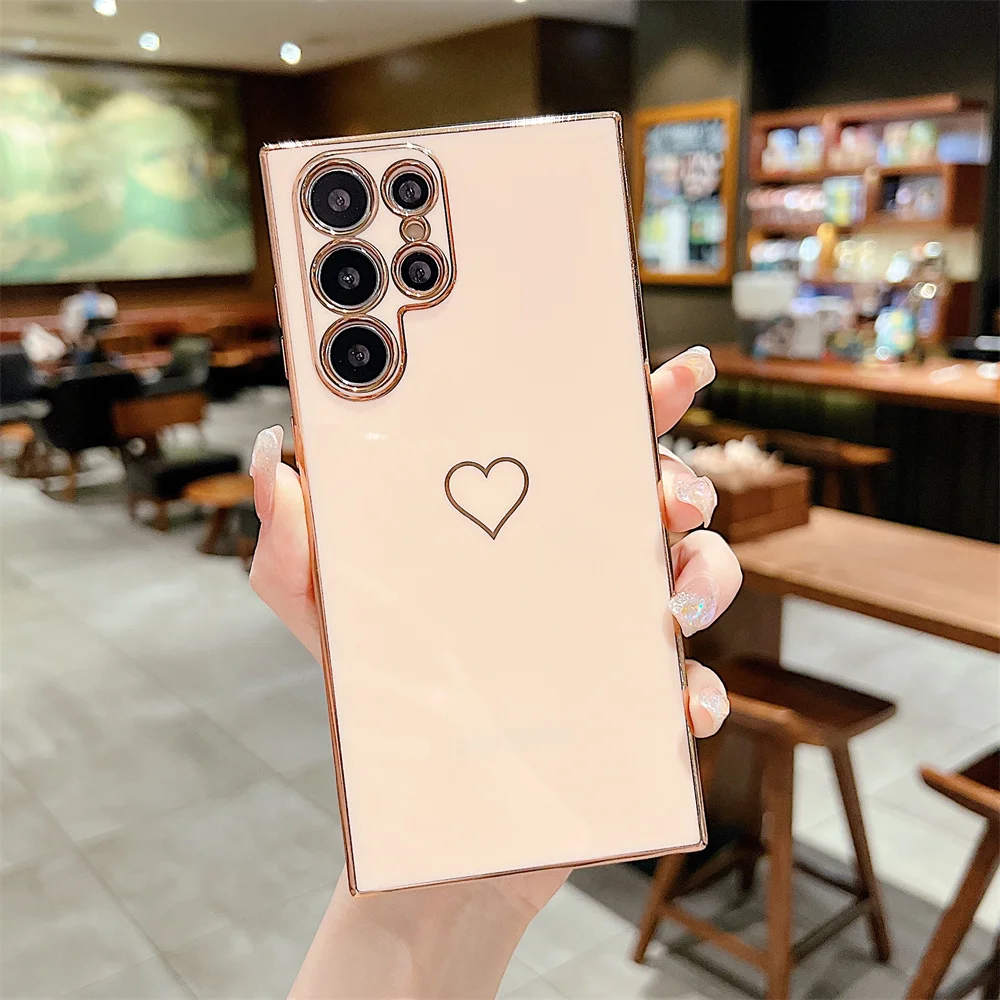 Heart Leaf Pattern Cute Solid Color Case for Samsung Galaxy S23 S22 Ultra Plus