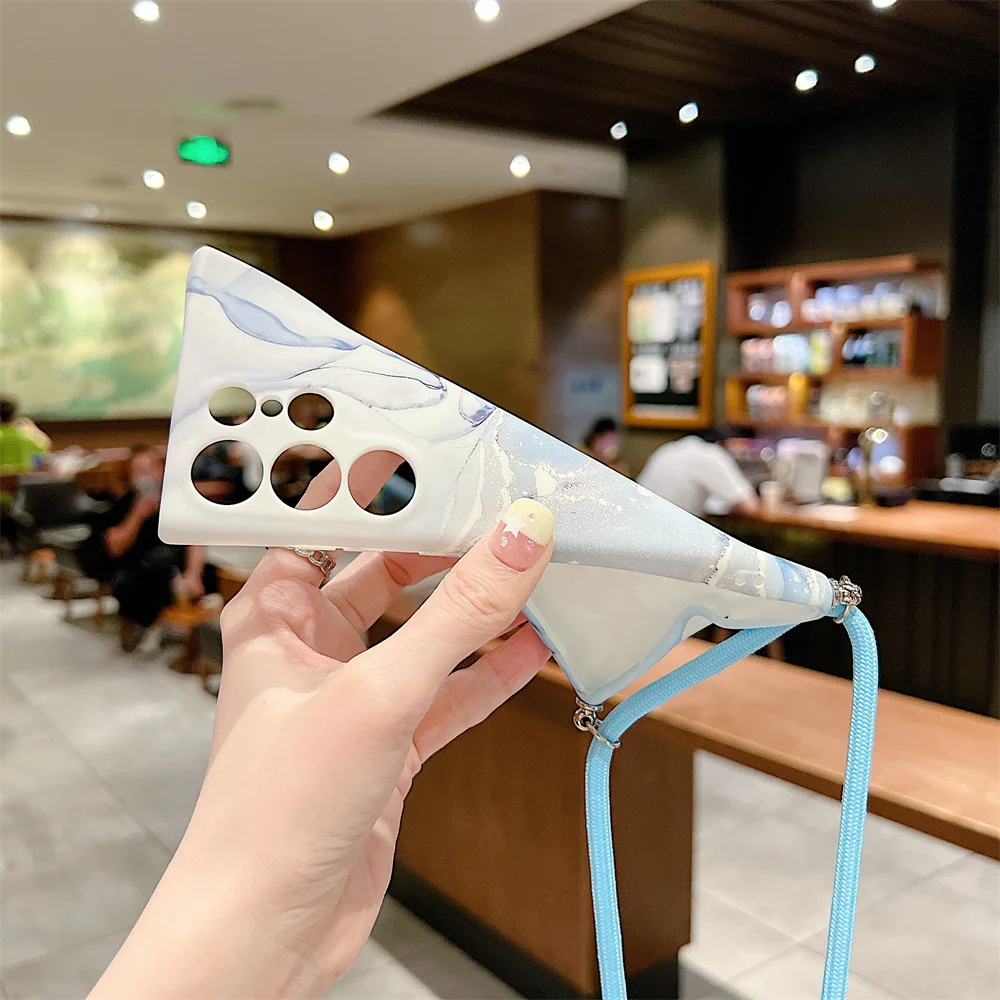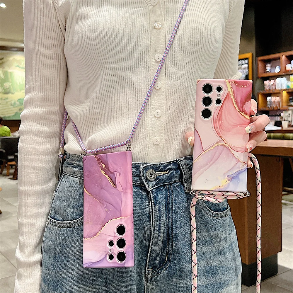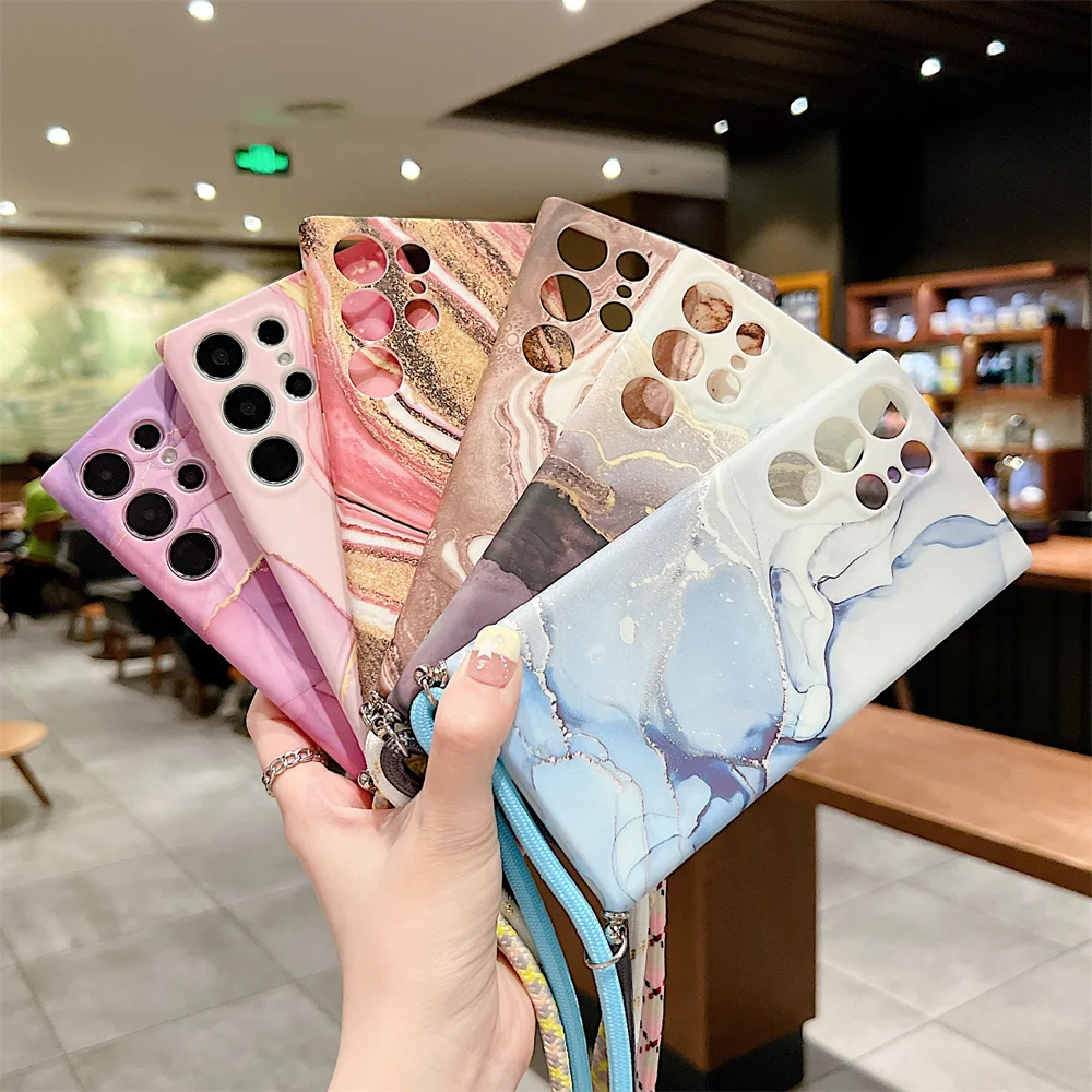 Luxury Marbling Crossbody Shoulder Strap Necklace Chain Case For Samsung S23 S22 series