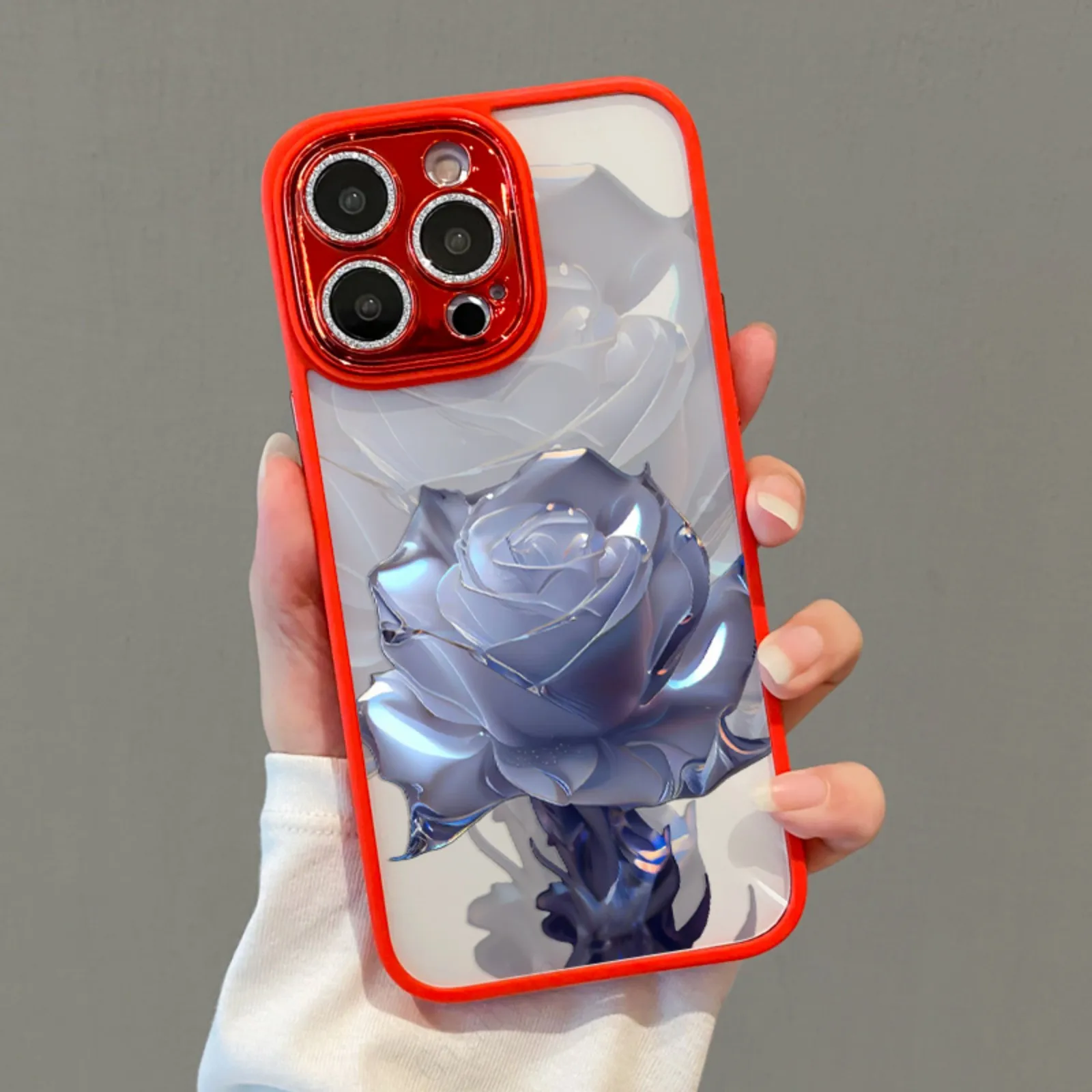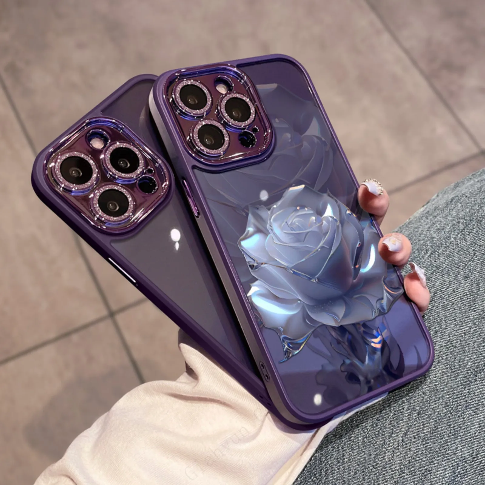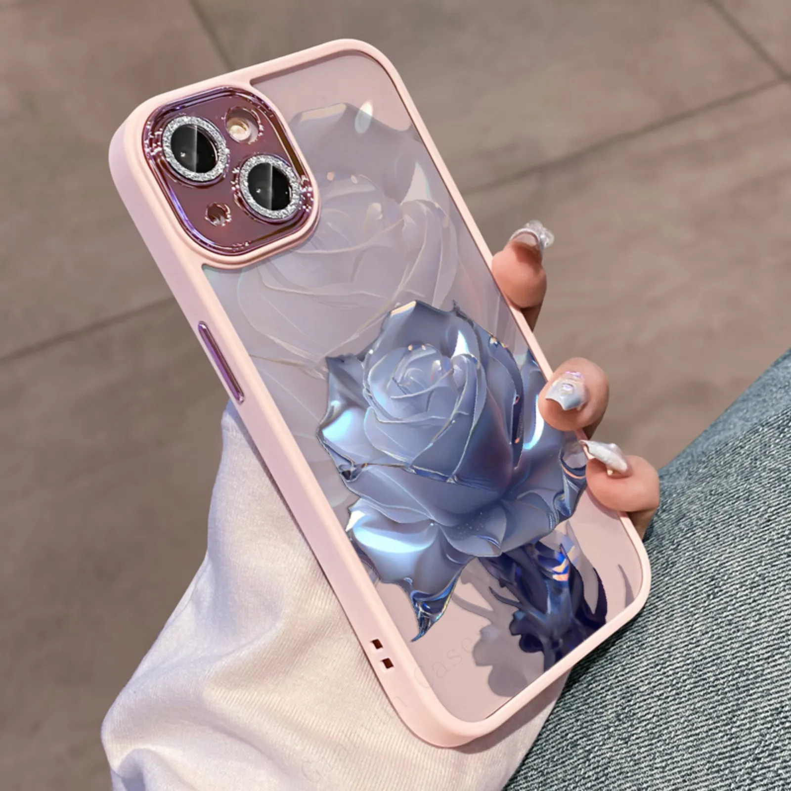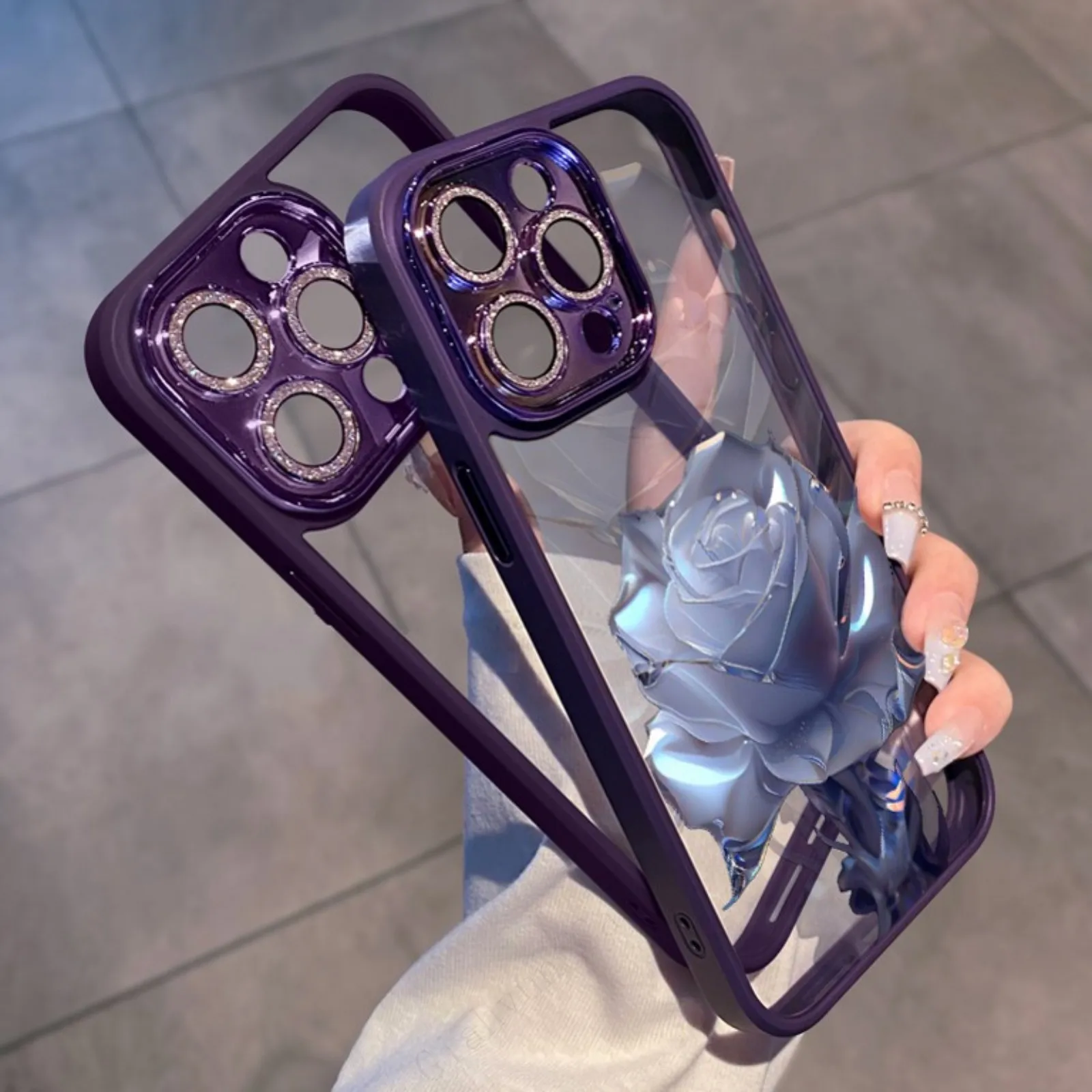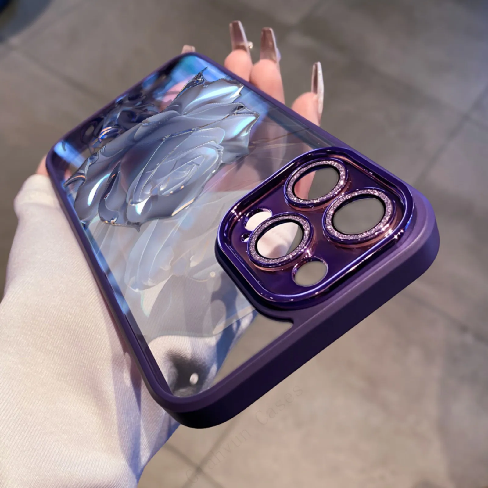 No Yellowing Crystal Rose Diamond Lens Protection Case For iPhone 14 13 12 series