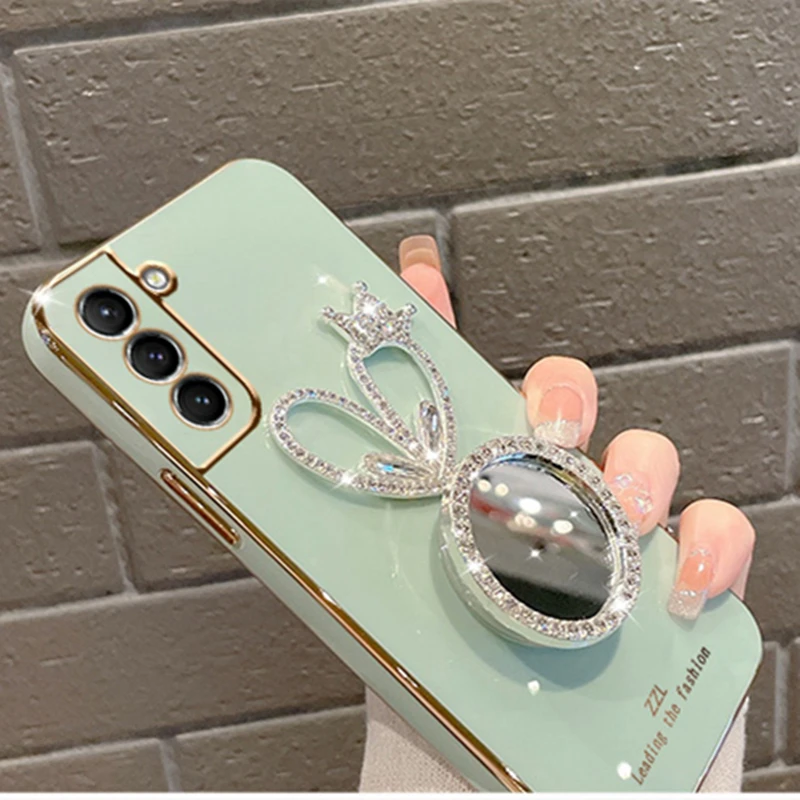 Shining Mirror Holder Plating Case for Samsung Galaxy S22 S21 S20 Ultra Plus FE