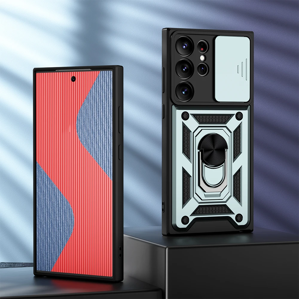 Shockproof Armor Slide Camera Lens Protection Ring Case for Samsung S23 S22 S21 Ultra Plus