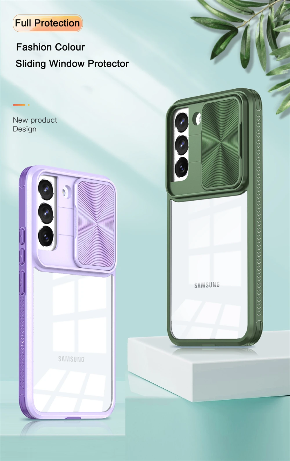 Slide Camera Protection Clear Case for Samsung S22 Series S21 S20 FE