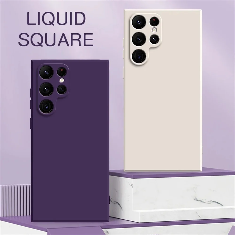 Solid Color Square Liquid Silicone Case For Samsung S23 S22 S21 Ultra Plus