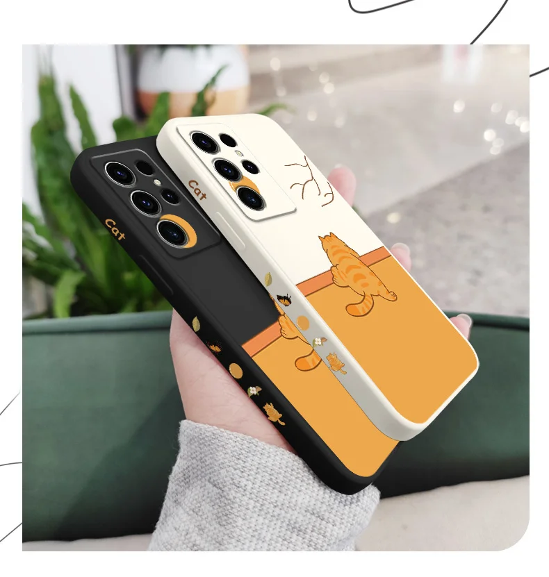 Cute Fat Orange Cat Liquid Silicone Case For Samsung Galaxy S23 S22 S21 series