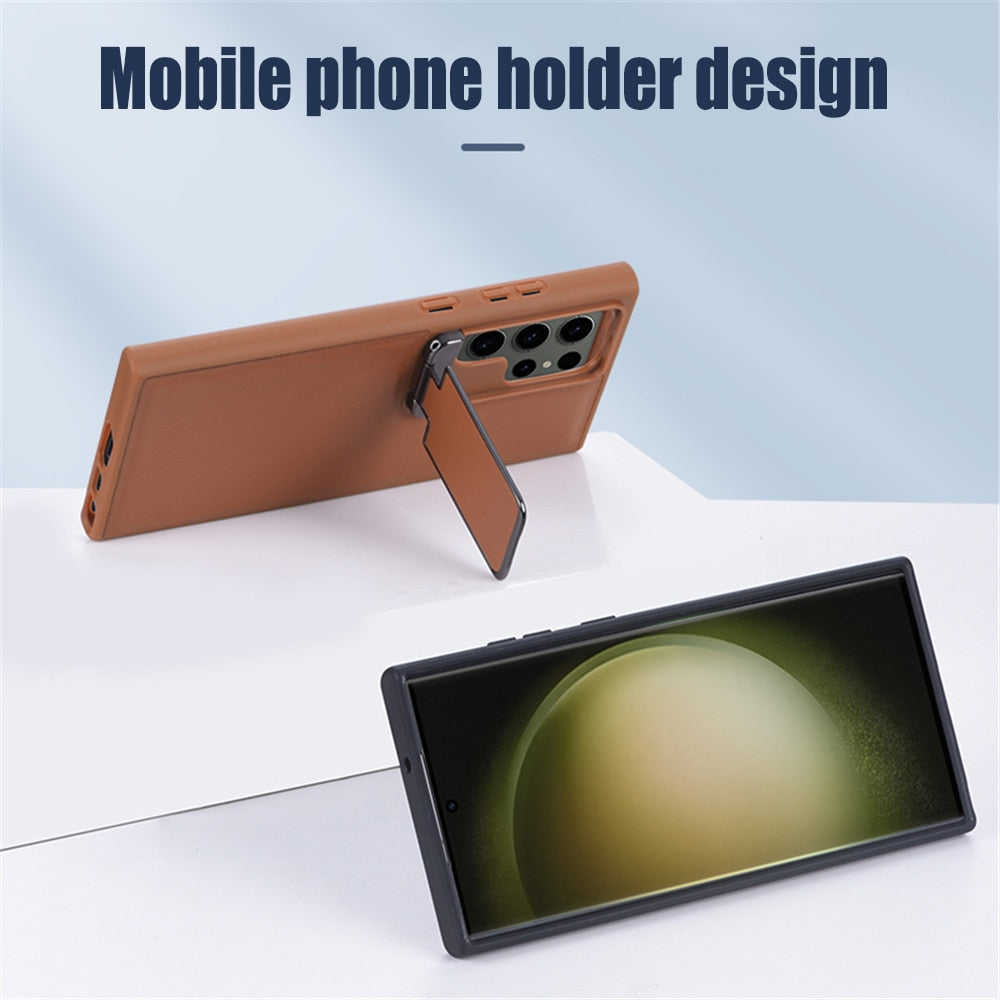 Luxury Leather Flip Bracket Camera Protection Shockproof Case For Samsung Galaxy S23 series