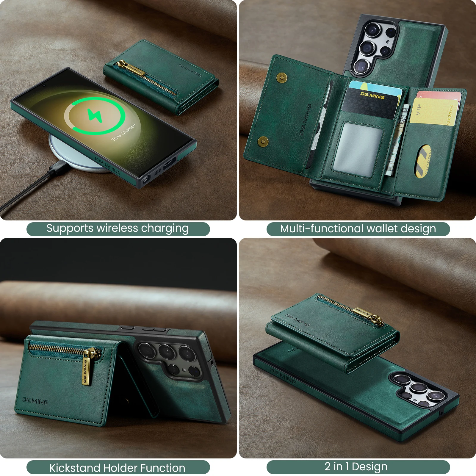 Zipper Cards Slots Detachable Leather Wallet Case For Samsung Galaxy S23 S22 S21 Series