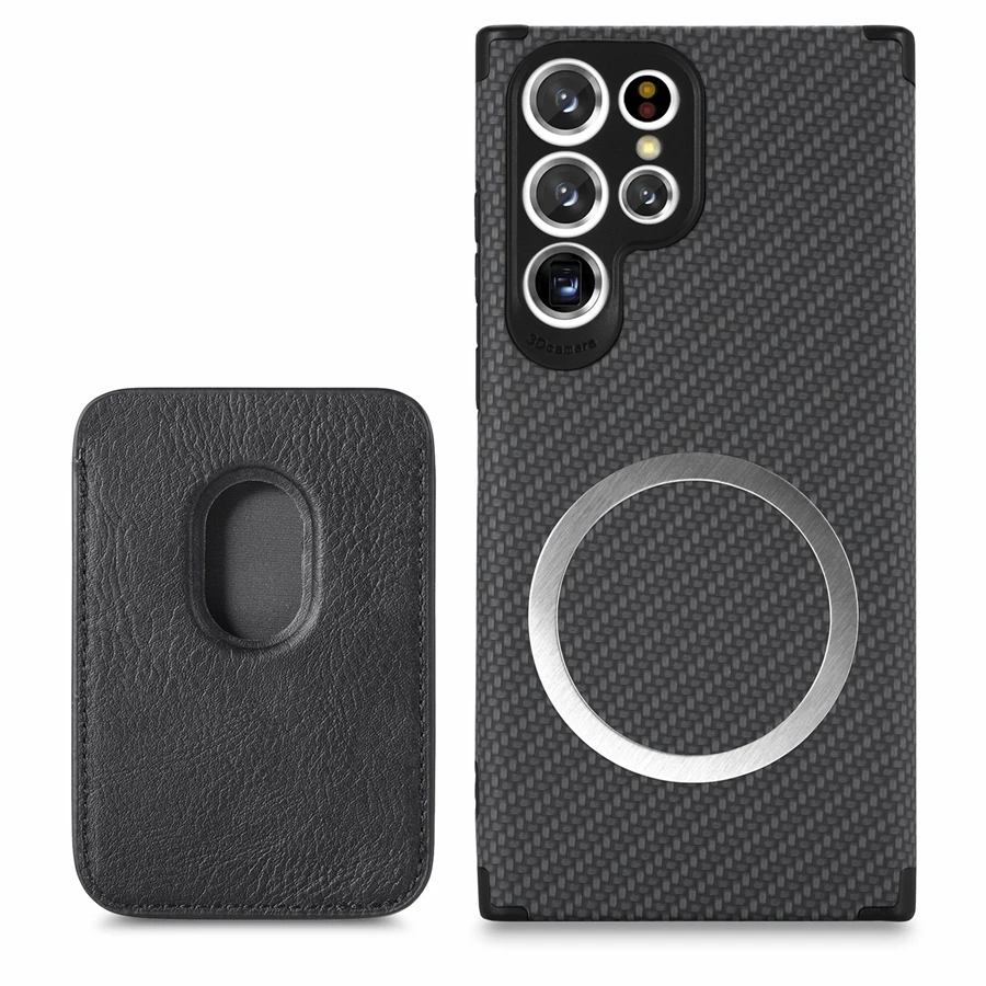 Magsafe Carbon Fiber Texture Leather Magnetic Wallet Card Pocket Case for Samsung Galaxy S24 S23 S22 S21 Ultra Plus