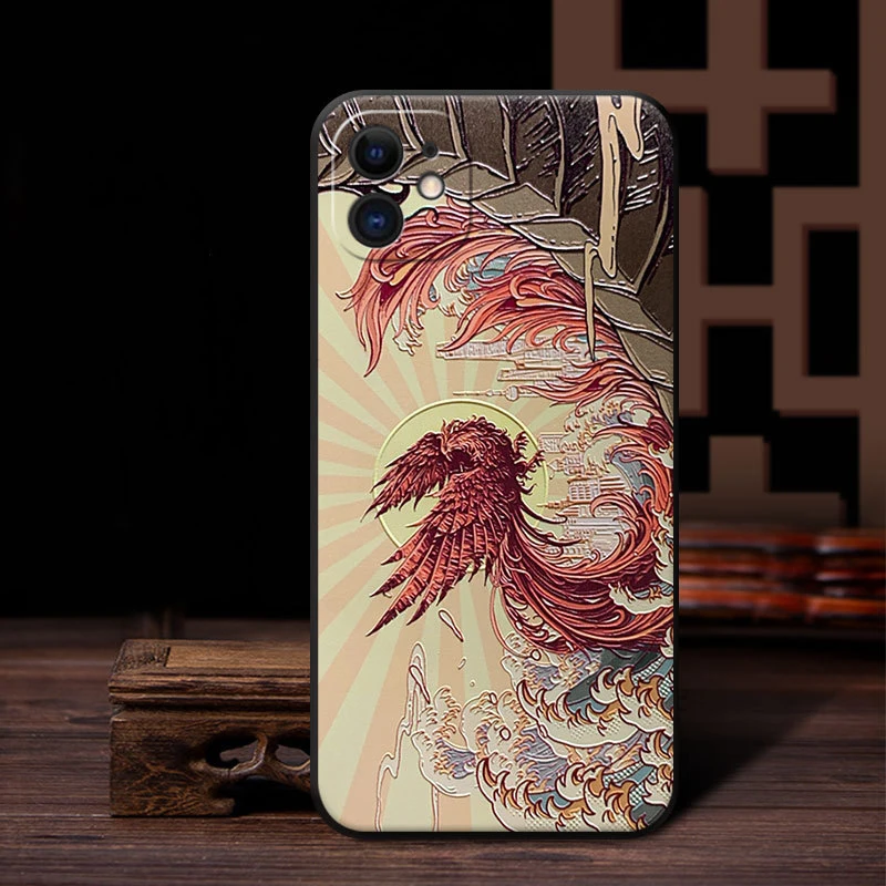 3D Embossed Dragon Phoenix Soft Shockproof Cover for iPhone 12 11 Series