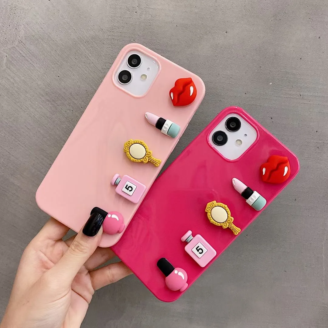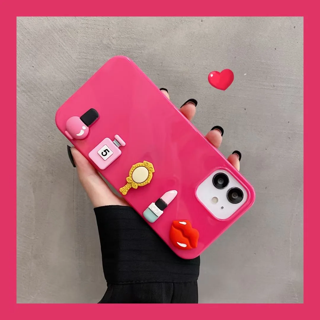 3D Toy Soft Vogue Girl Perfume Lipstick Phone Case For iPhone 12 11 XS Series
