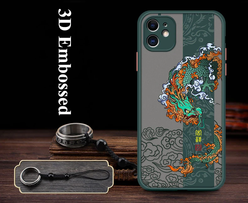 Shockproof Matte Embossed Soft Cover with Finger Ring Case for iPhone 12 11 Series