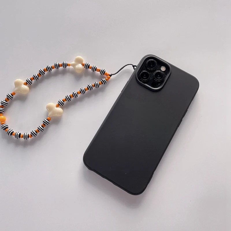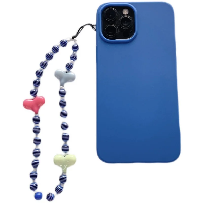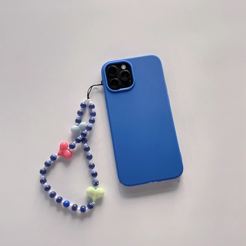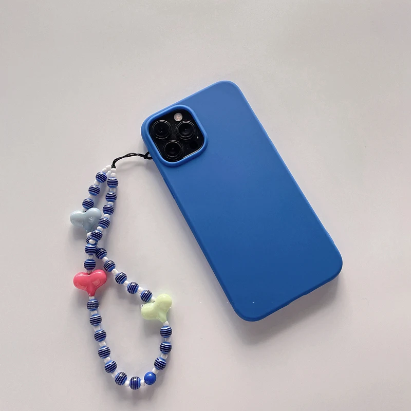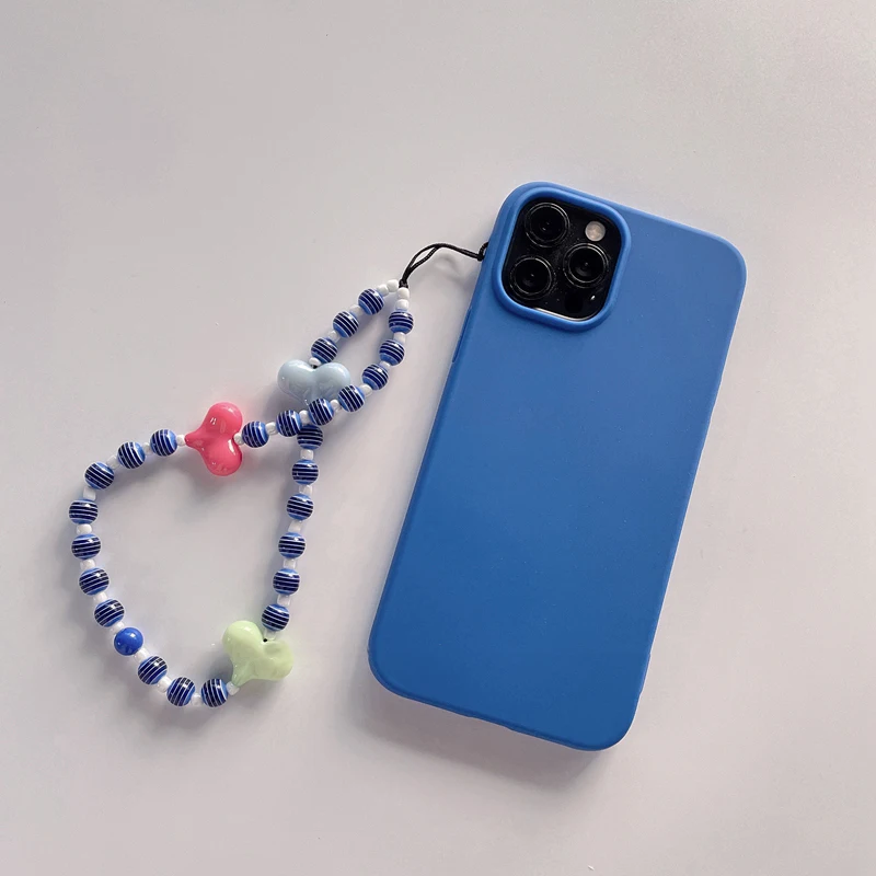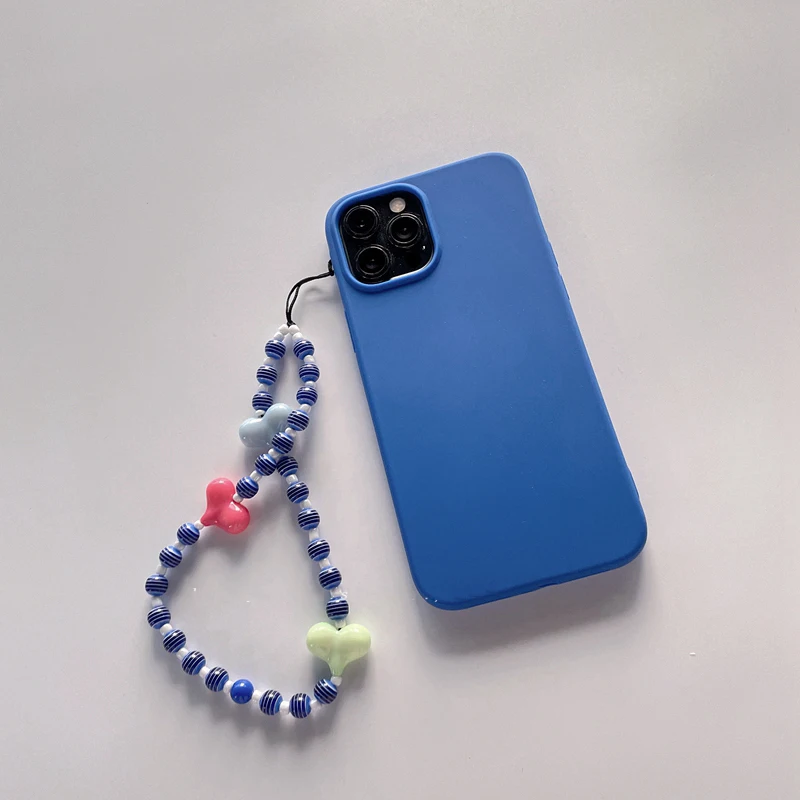 Soft Silicone Phone Case with Bohemian Acrylic Colorful Beaded Love Heart Lanyard For Iphone 12 11 XS Series