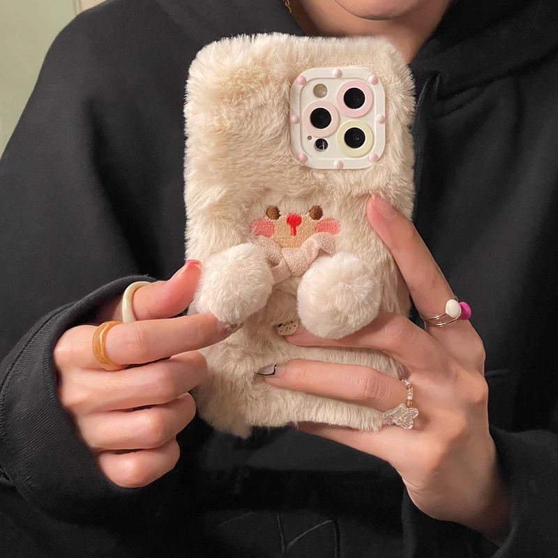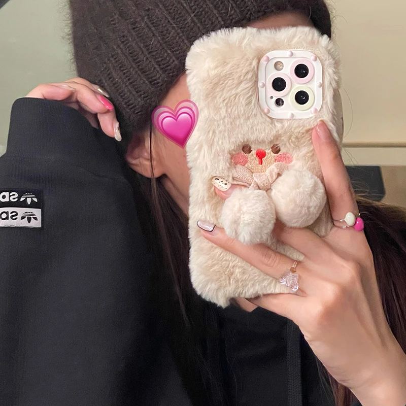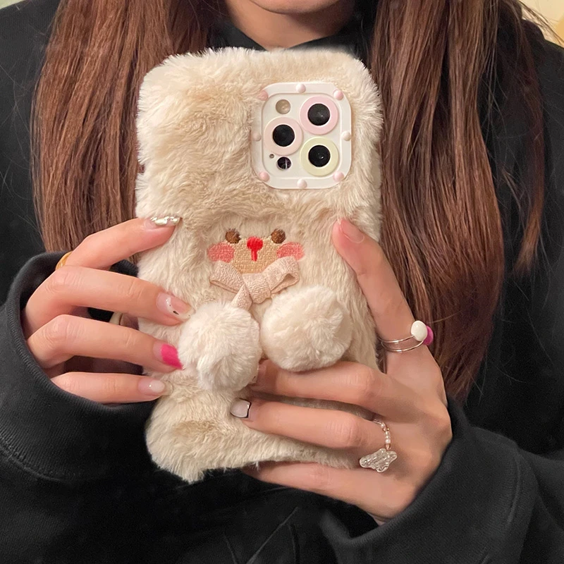 Fashion Bowknot Girl Style Plush Phone Case For iPhone 13 12 11 Series