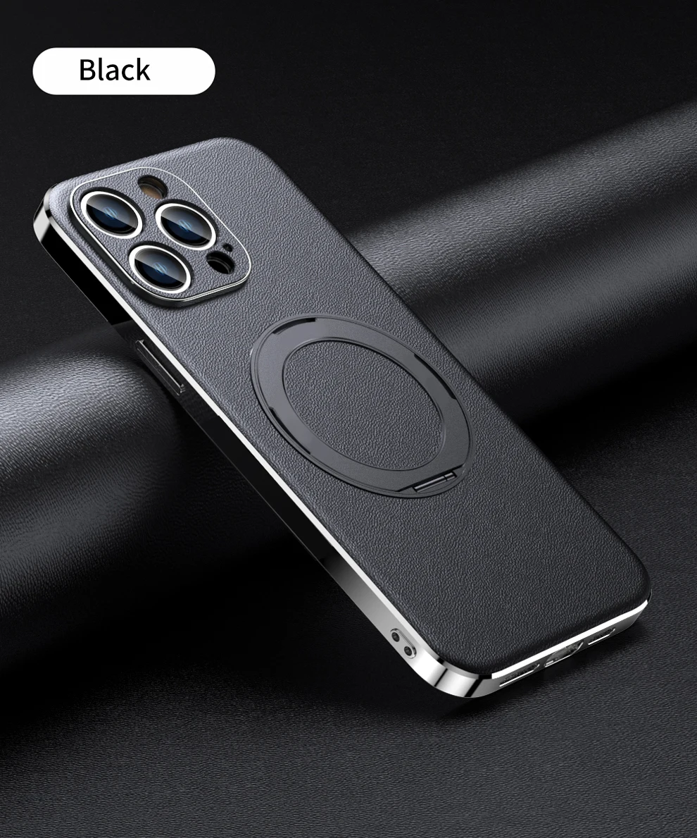 Genuine Leather Magsafe Lens Protection Magnetic Holder Case For iPhone 14 13 12 series