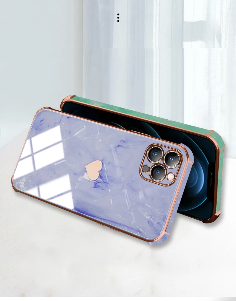 Luxury Electroplating Golden Heart Pattern Case For iPhone 13 12 11 Series