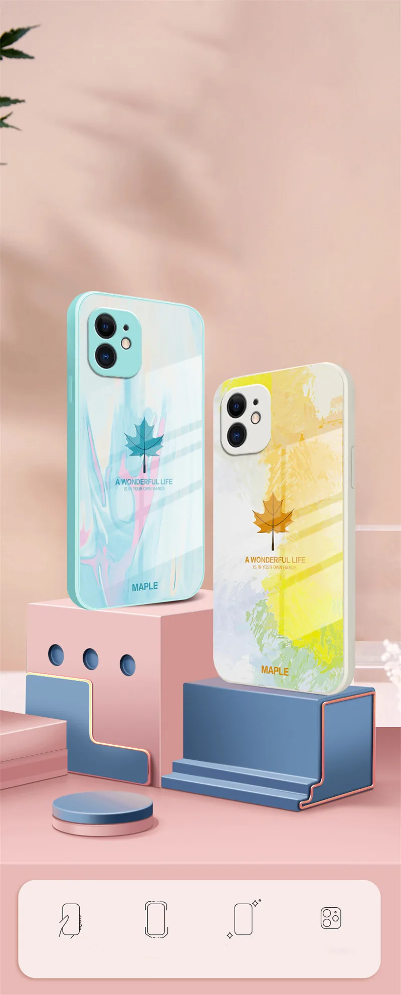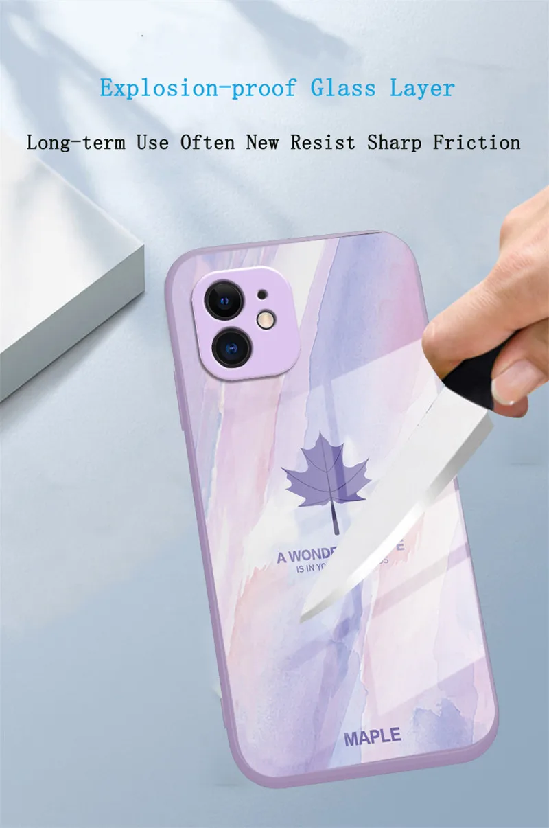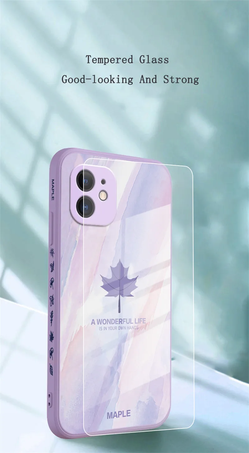 Maple Leaf Glass Phone Case with Lanyard Strap For iPhone 13 12 11 Series