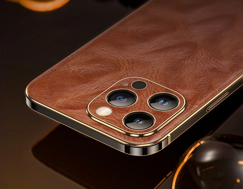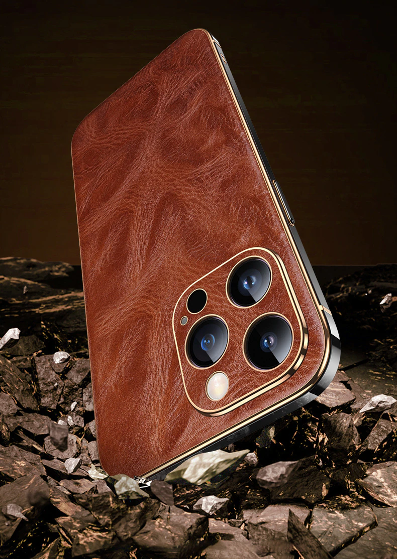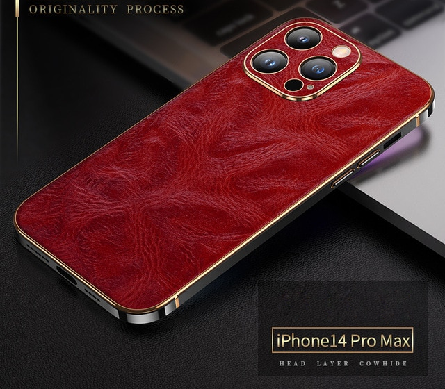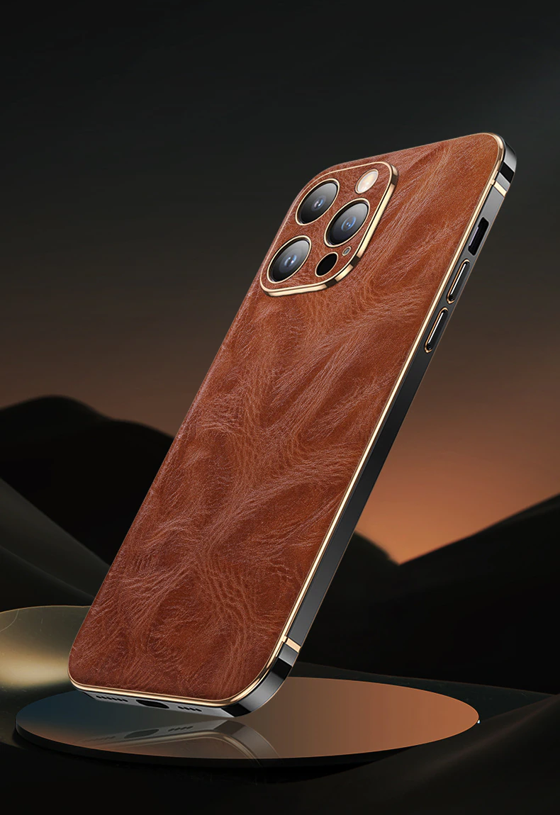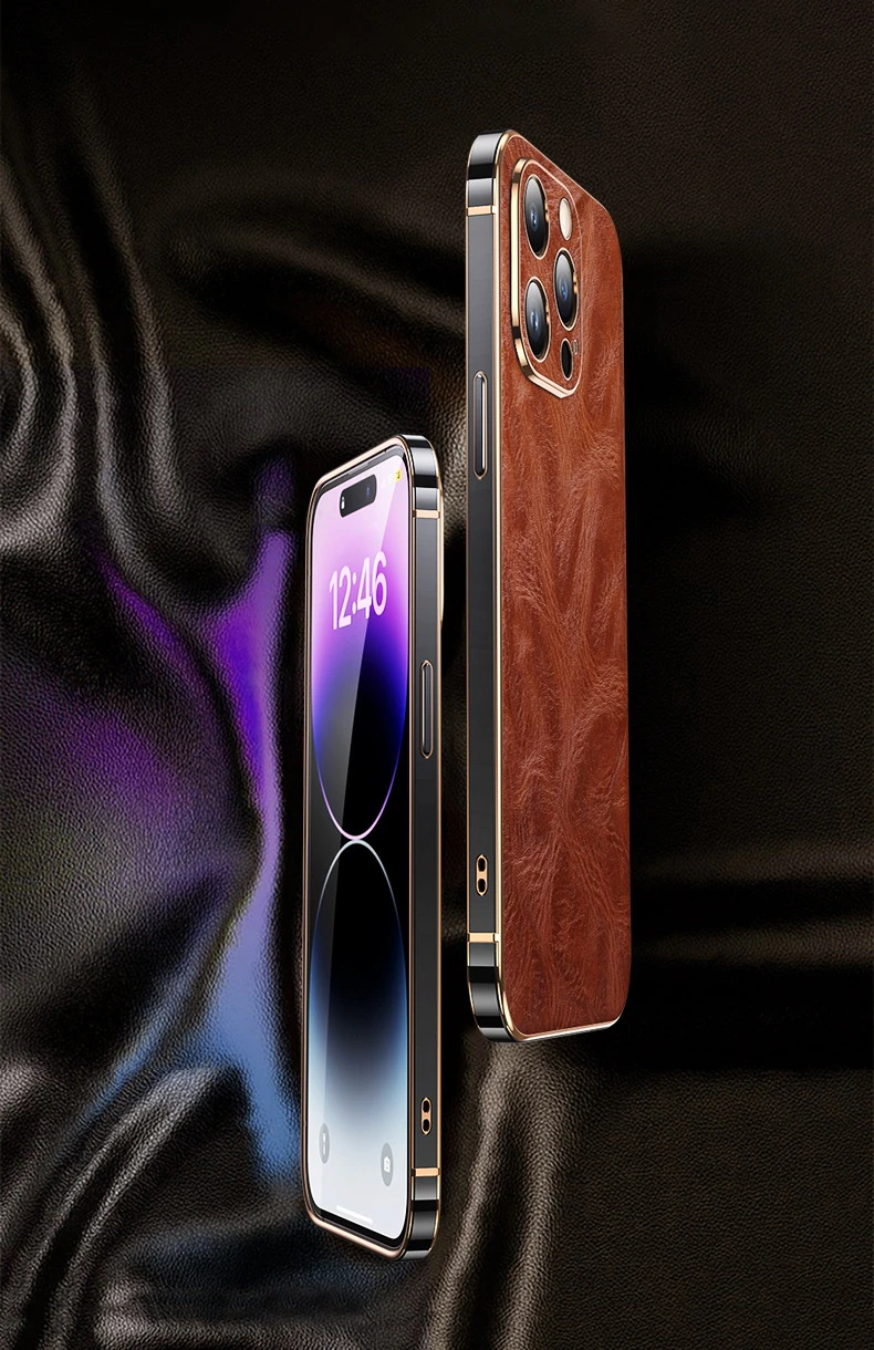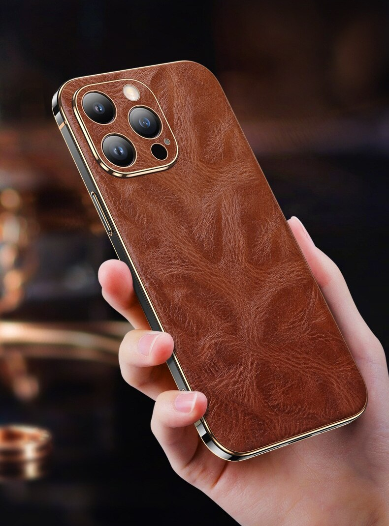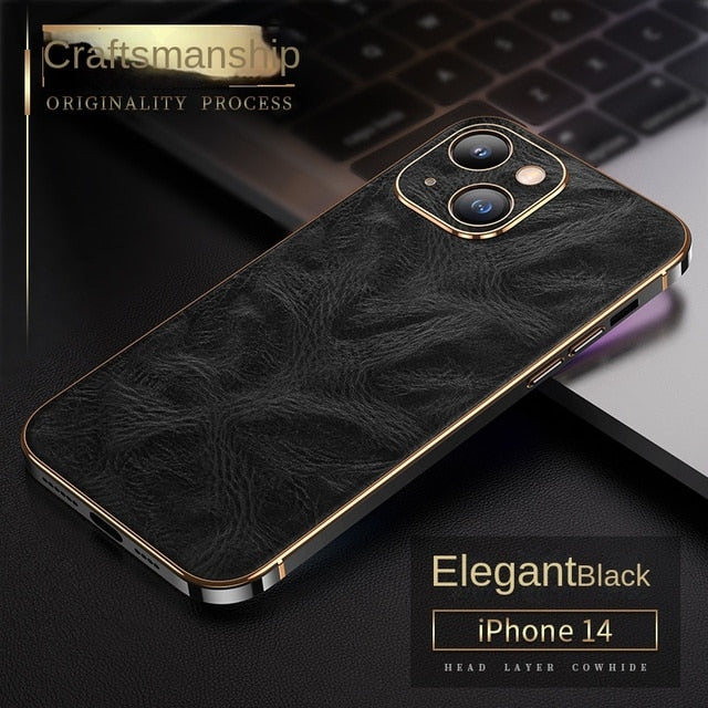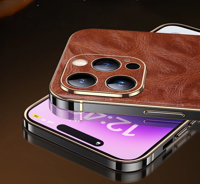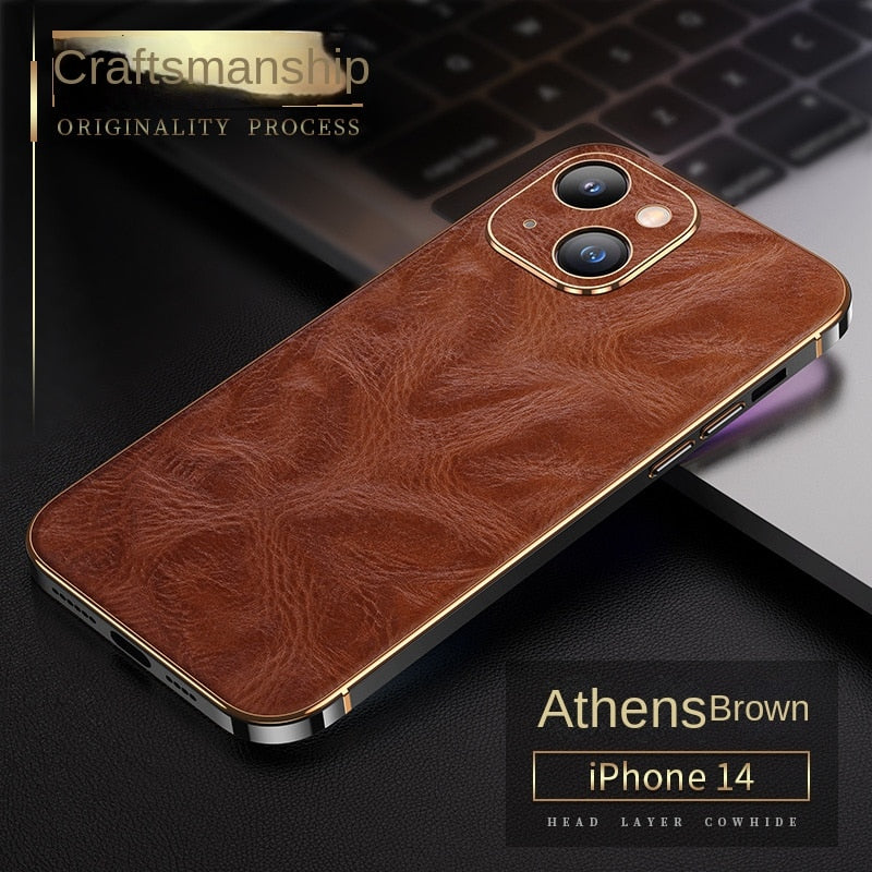Premium Leather Oil Wax Metal Border Case for iPhone 14 13 series