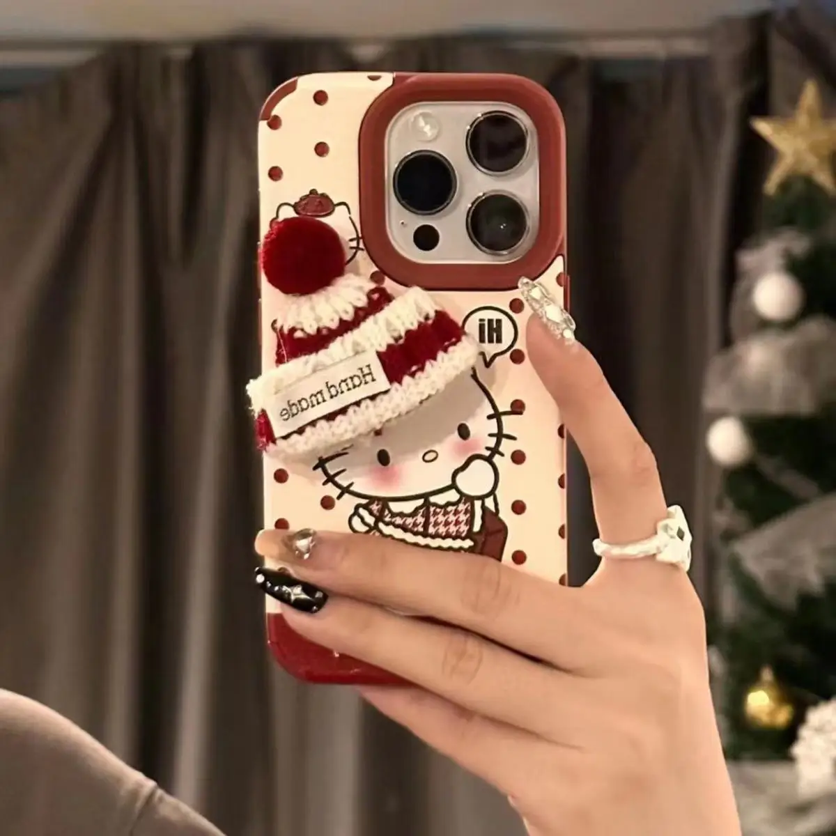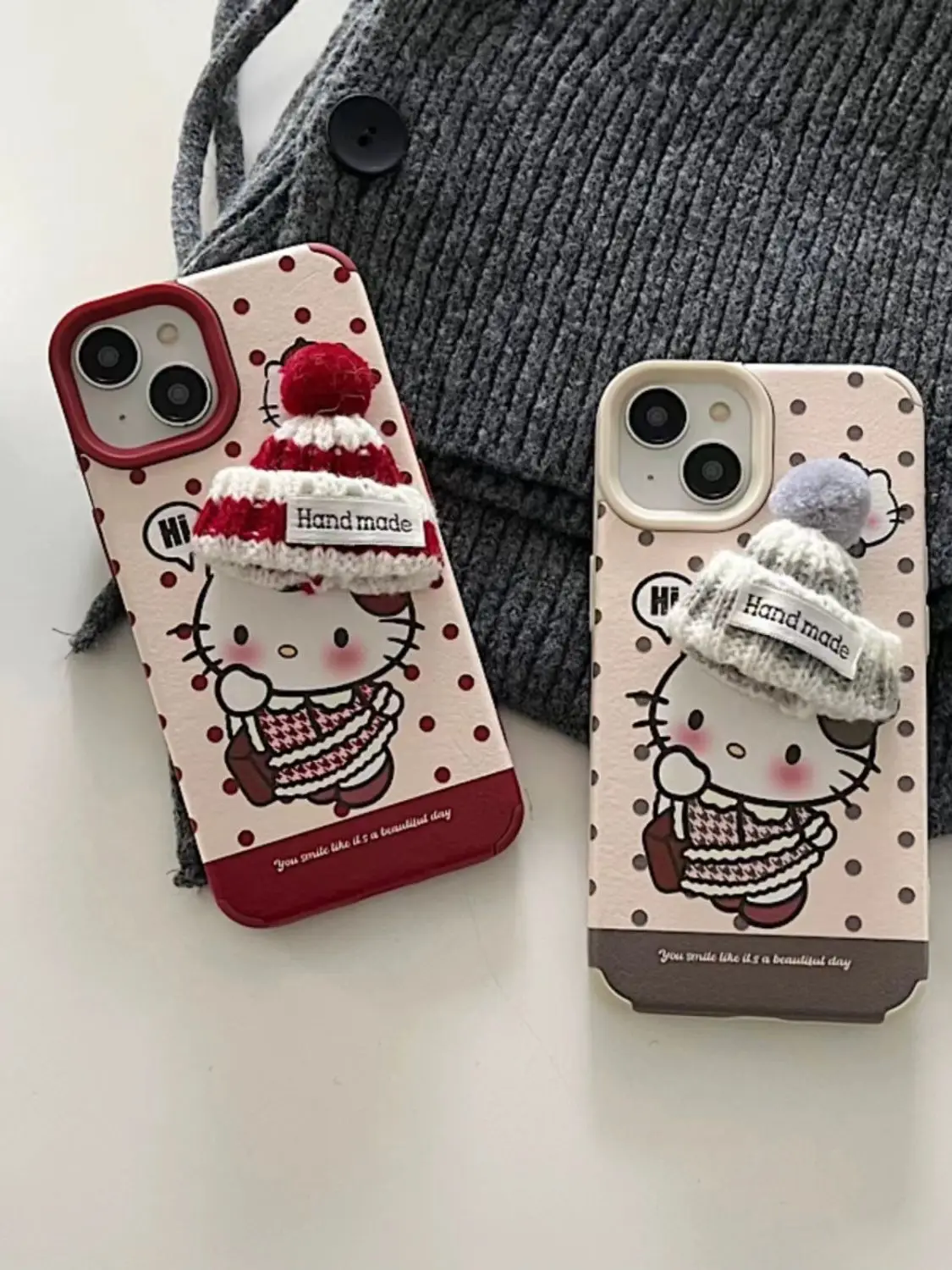 Cartoon Cute Kitty With Wool Hat Winter Beanie Case For iPhone 15 14 13 12 series