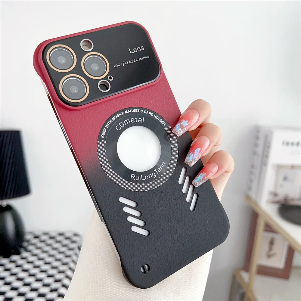 Leather Pattern MagSafe Frameless Heat Dissipation Ultra Thin PC Case for iPhone 15 14 13 12 series
