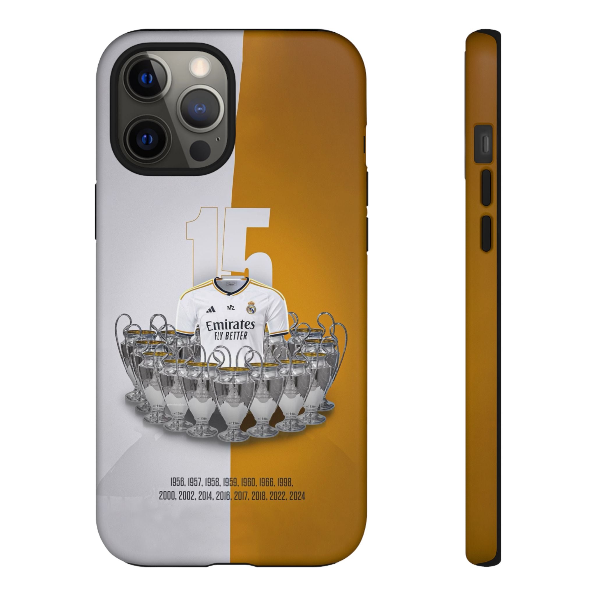Real Madrid & 15 European Trophies Luxury Touch Phone Case for iPhone 15 14 13 12