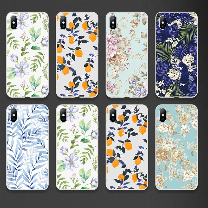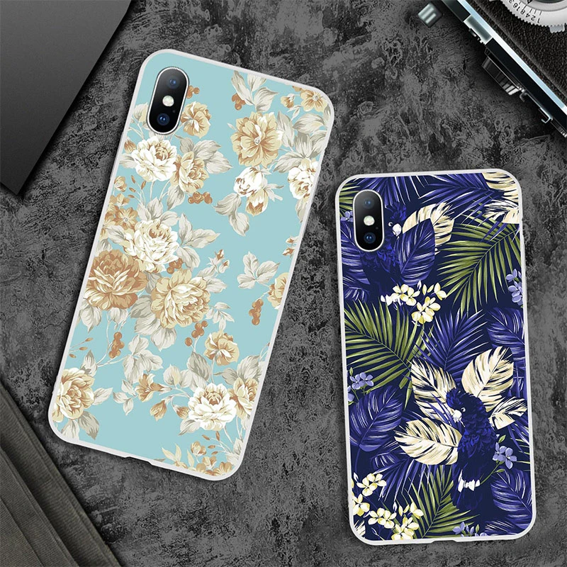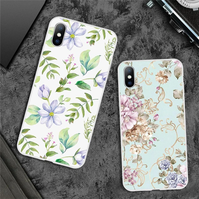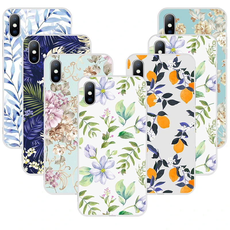 2019 Summer Flowers Green Leaves Phone Case For iPhone XS Max XR 8 7 6s Plus