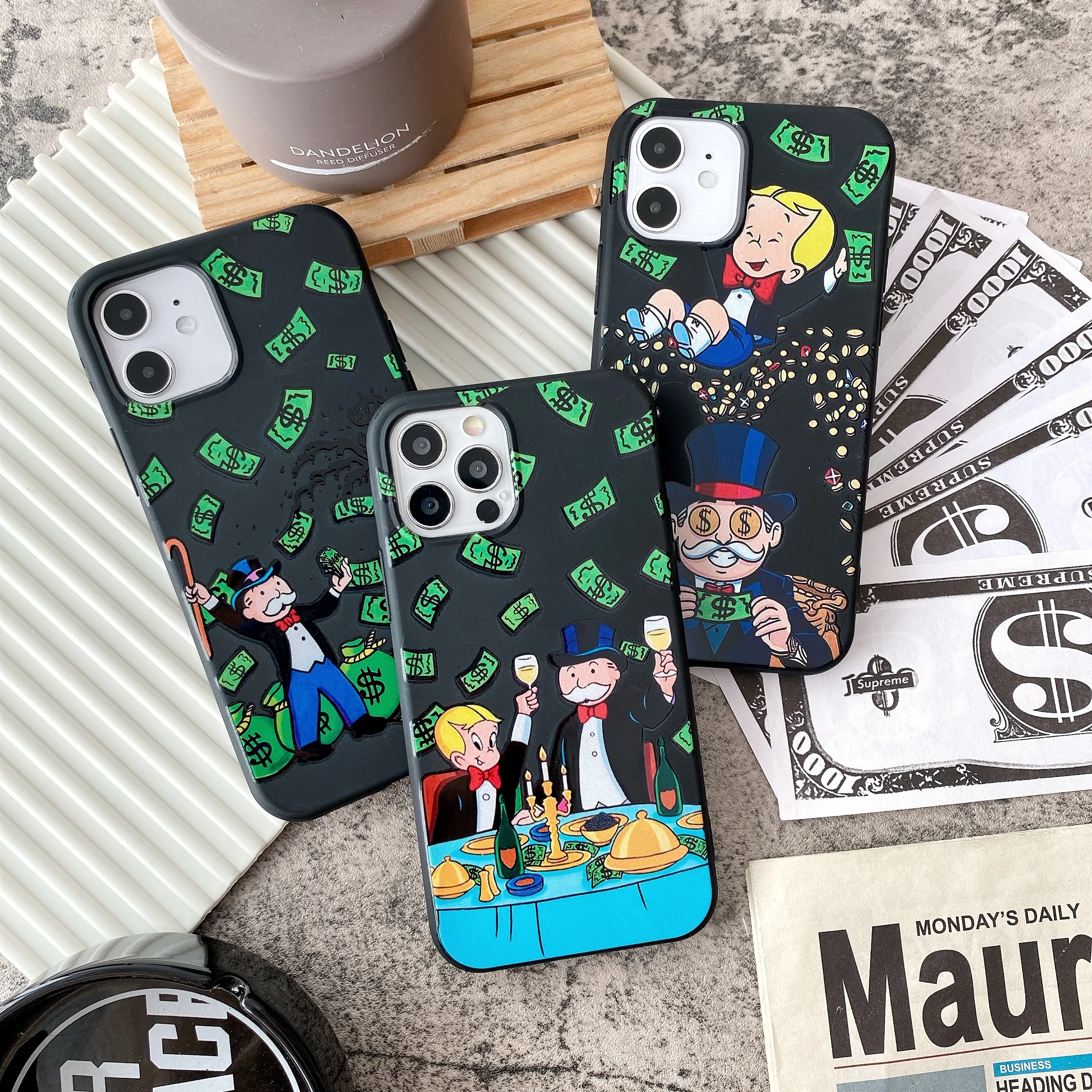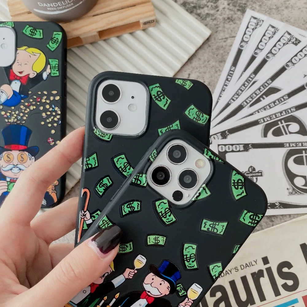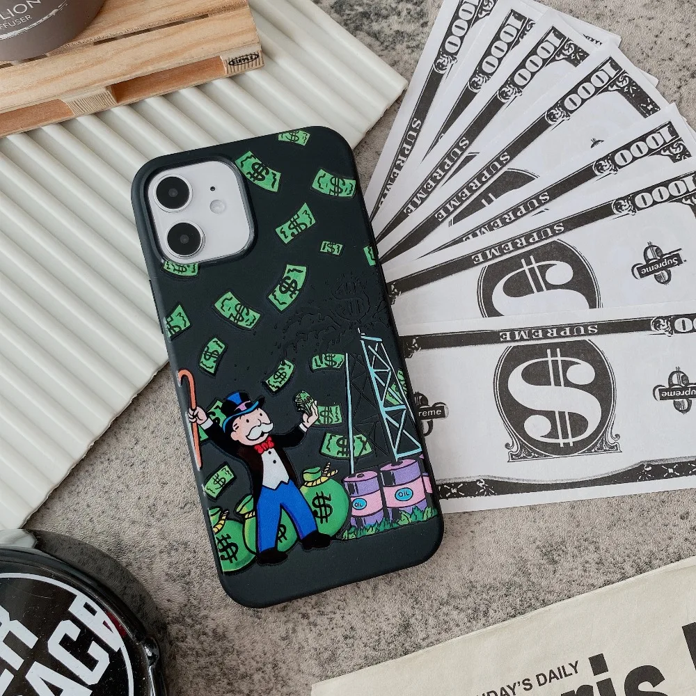 Oil Tycoon Banker Embossed Soft Silicone Cartoon Dollar Money Case For iPhone 12 11 Series