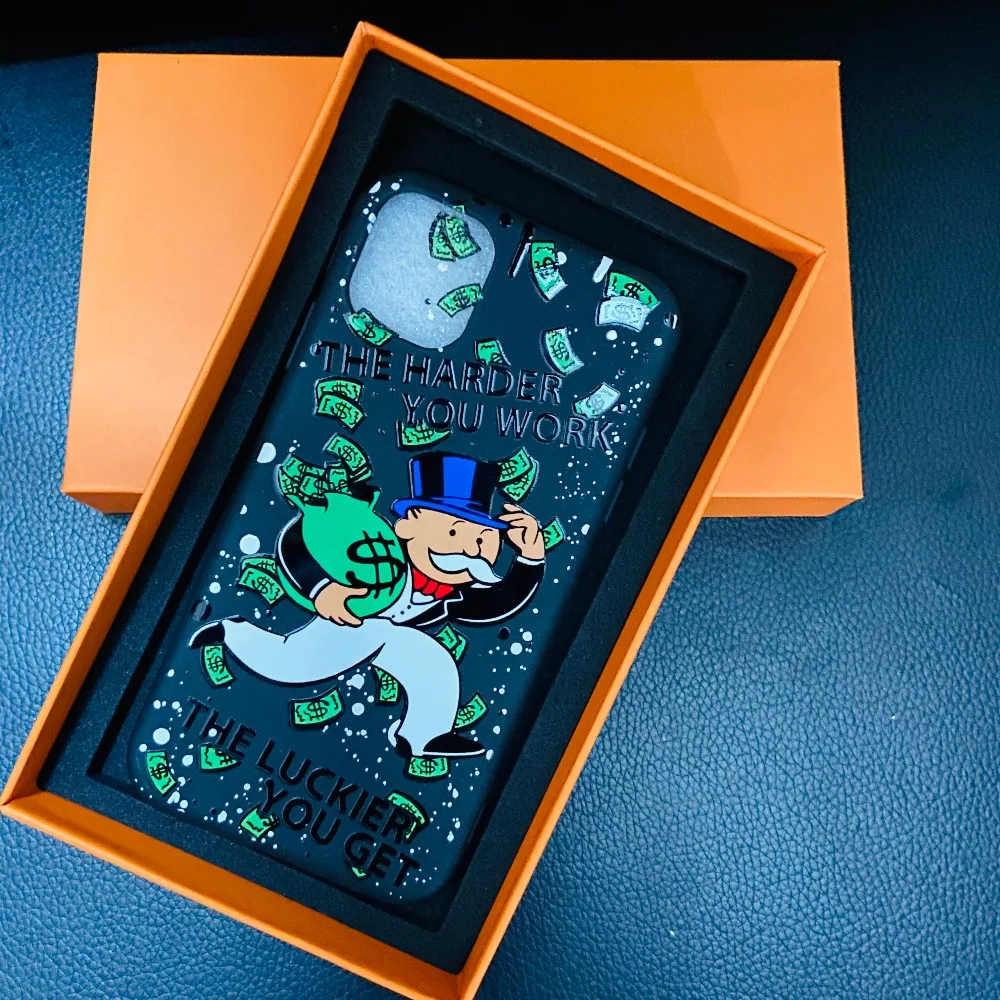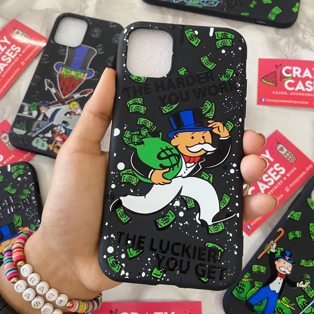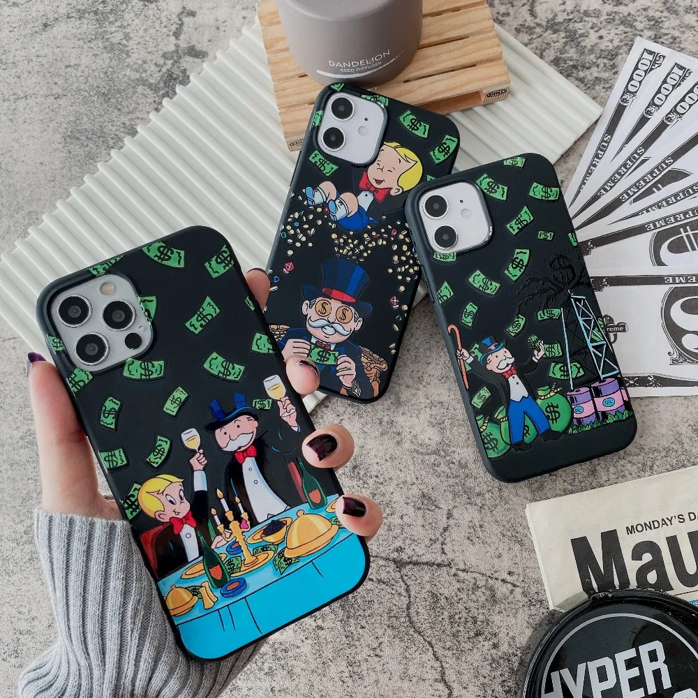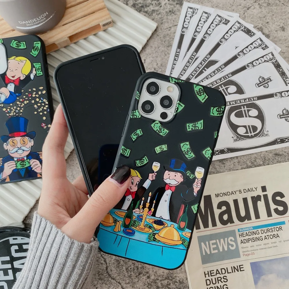 Oil Tycoon Banker Embossed Soft Silicone Cartoon Dollar Money Case For iPhone 12 11 Series