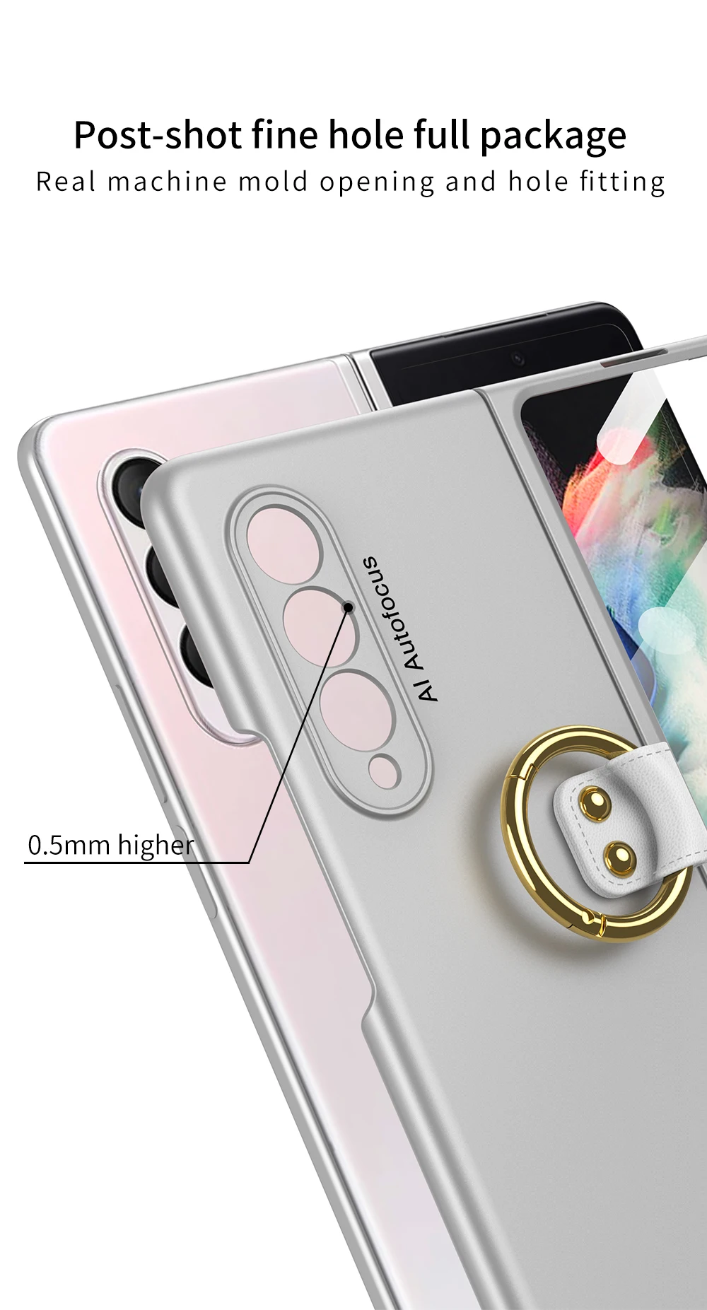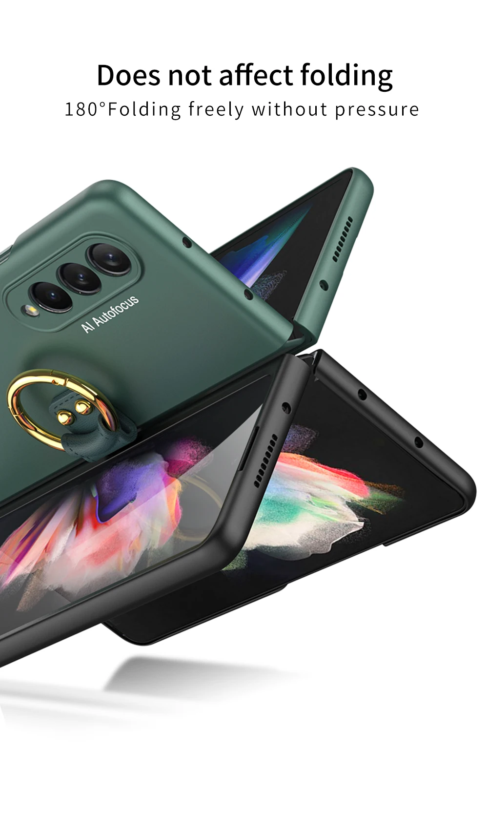 360 Full Protection Plain Finger Key Ring Hard Plastic Frame Case for Samsung Galaxy Z Fold 3