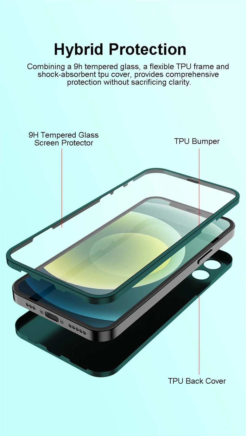 360 Full Protection Shockproof Tempered Glass Clear Case For iPhone 12 11 Series