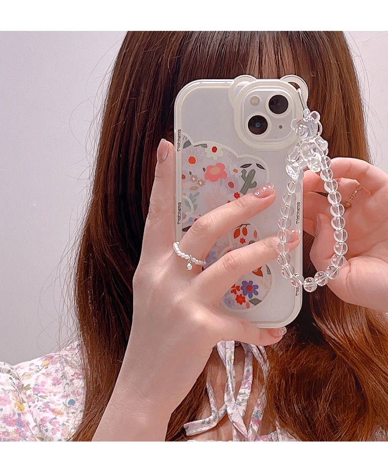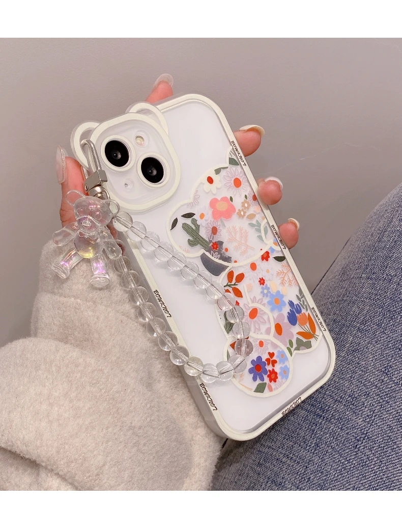 3D Bear Ear Flower Transparent Chain Silicone Case for iPhone 13 12 11 Pro Max