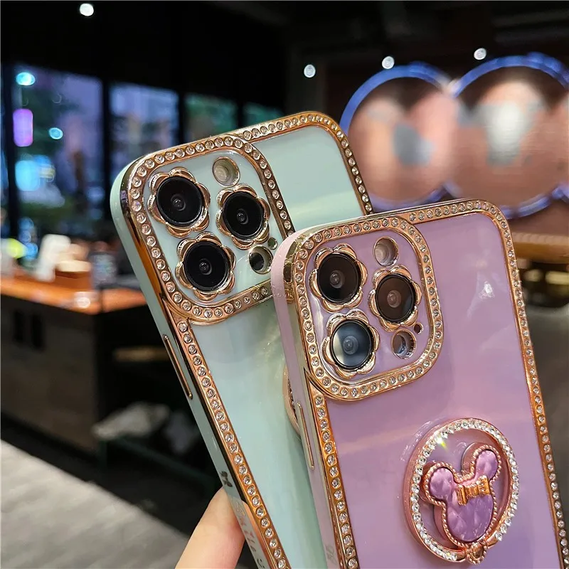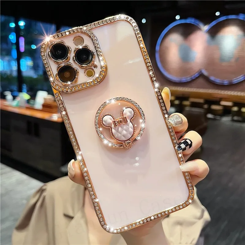 3D Bling Crystal Holder Stand Case For iPhone 14 13 12 series