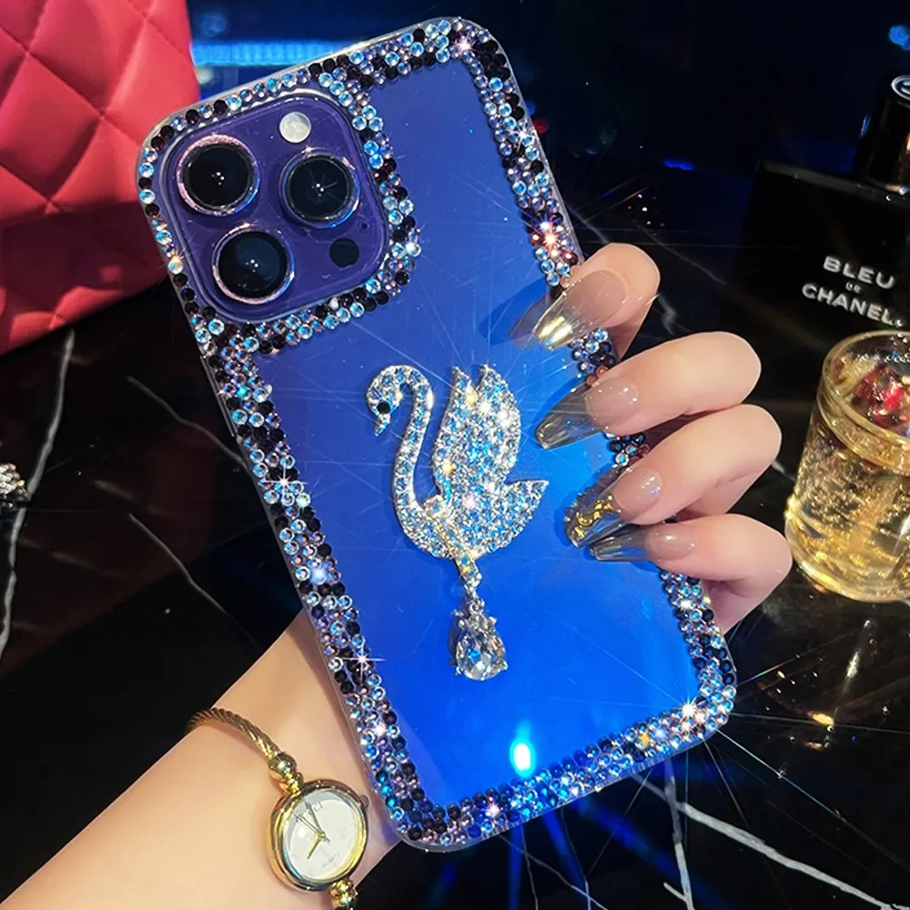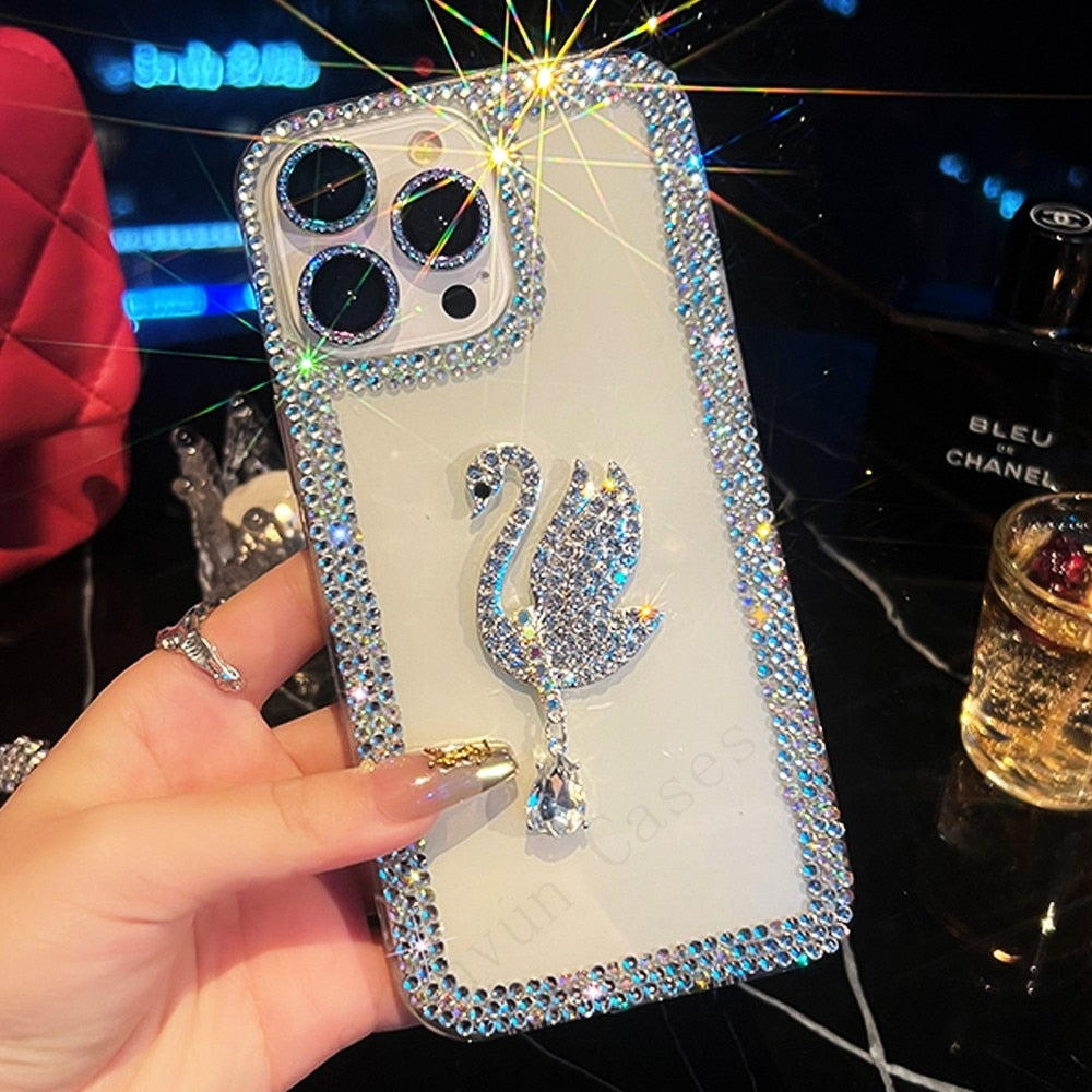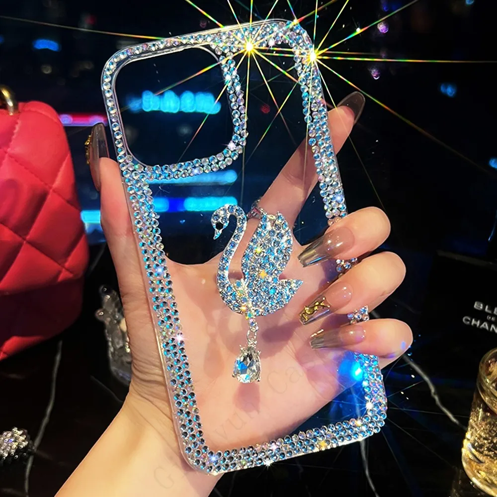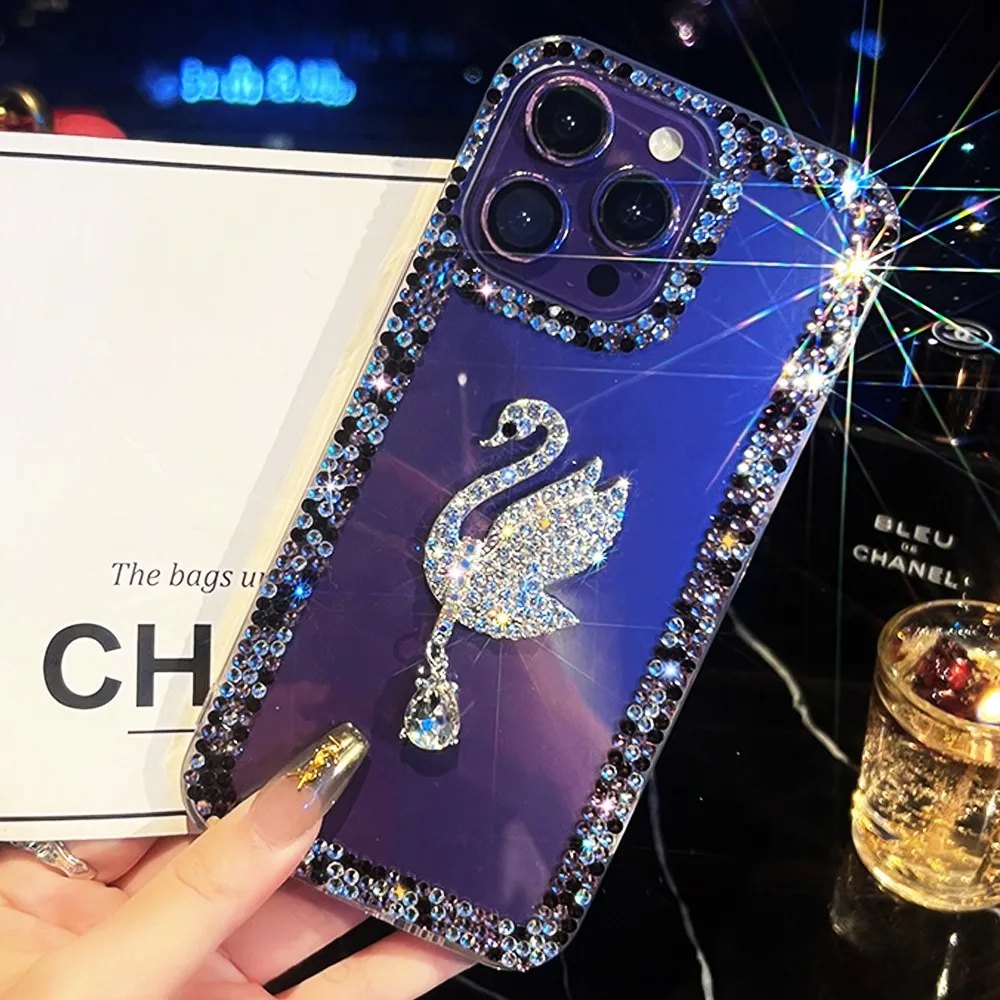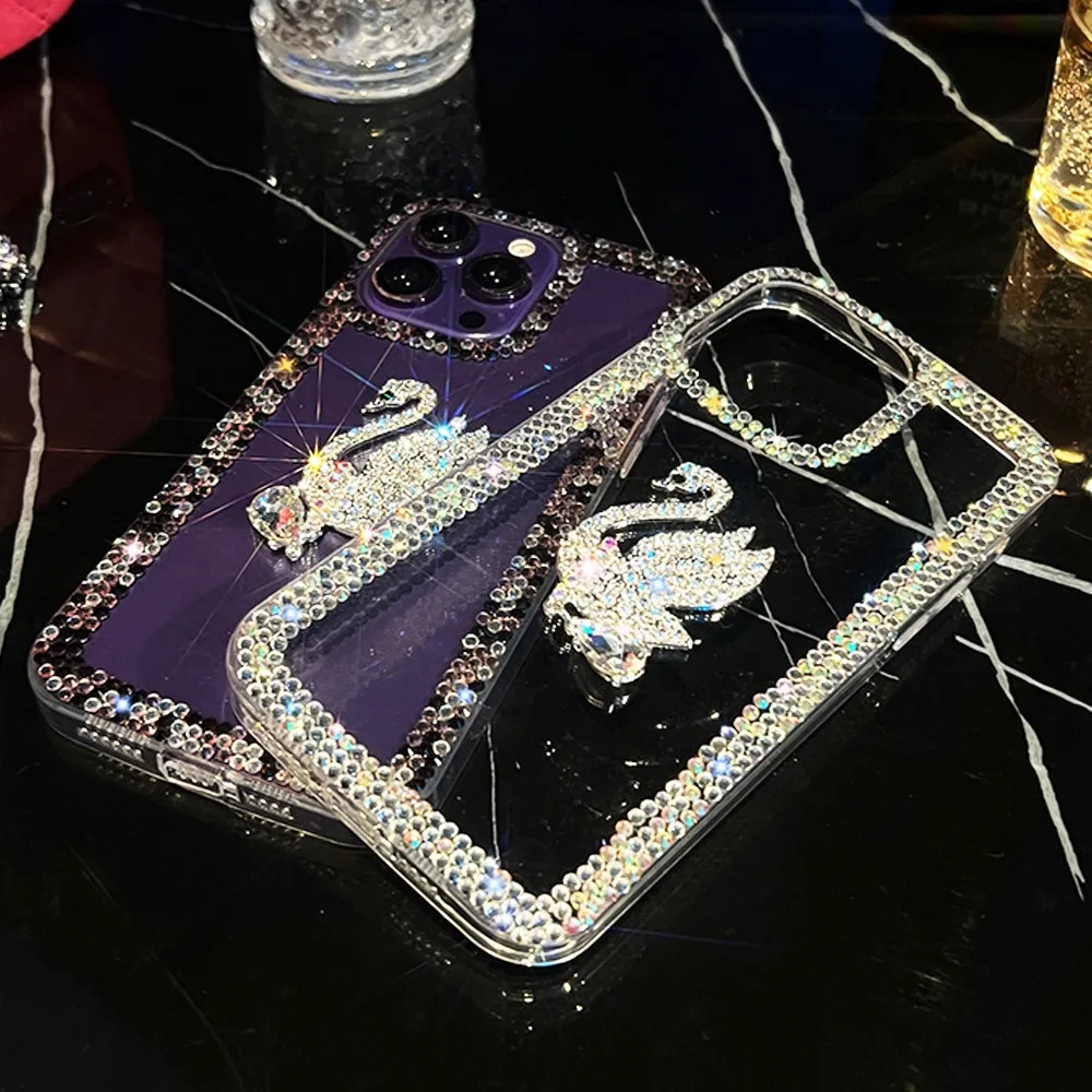 3D Bling Diamond Swan Glitter Crystal Case For iPhone 14 13 12 series