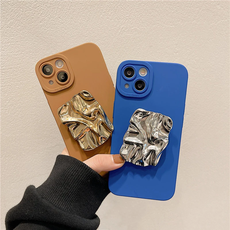 3D Electroplated Metal Holder Stand Case for iPhone 14 13 12 series