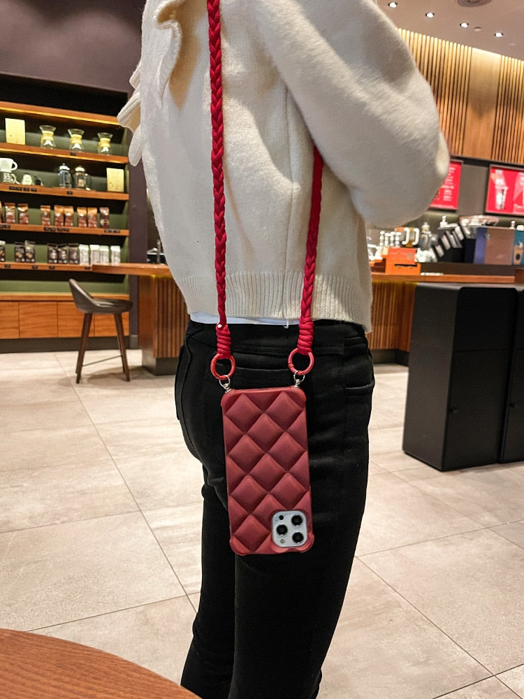 3D Luxury Diamond Crossbody Lanyard Shockproof Soft Silicone Case For iPhone 14 13 12 series