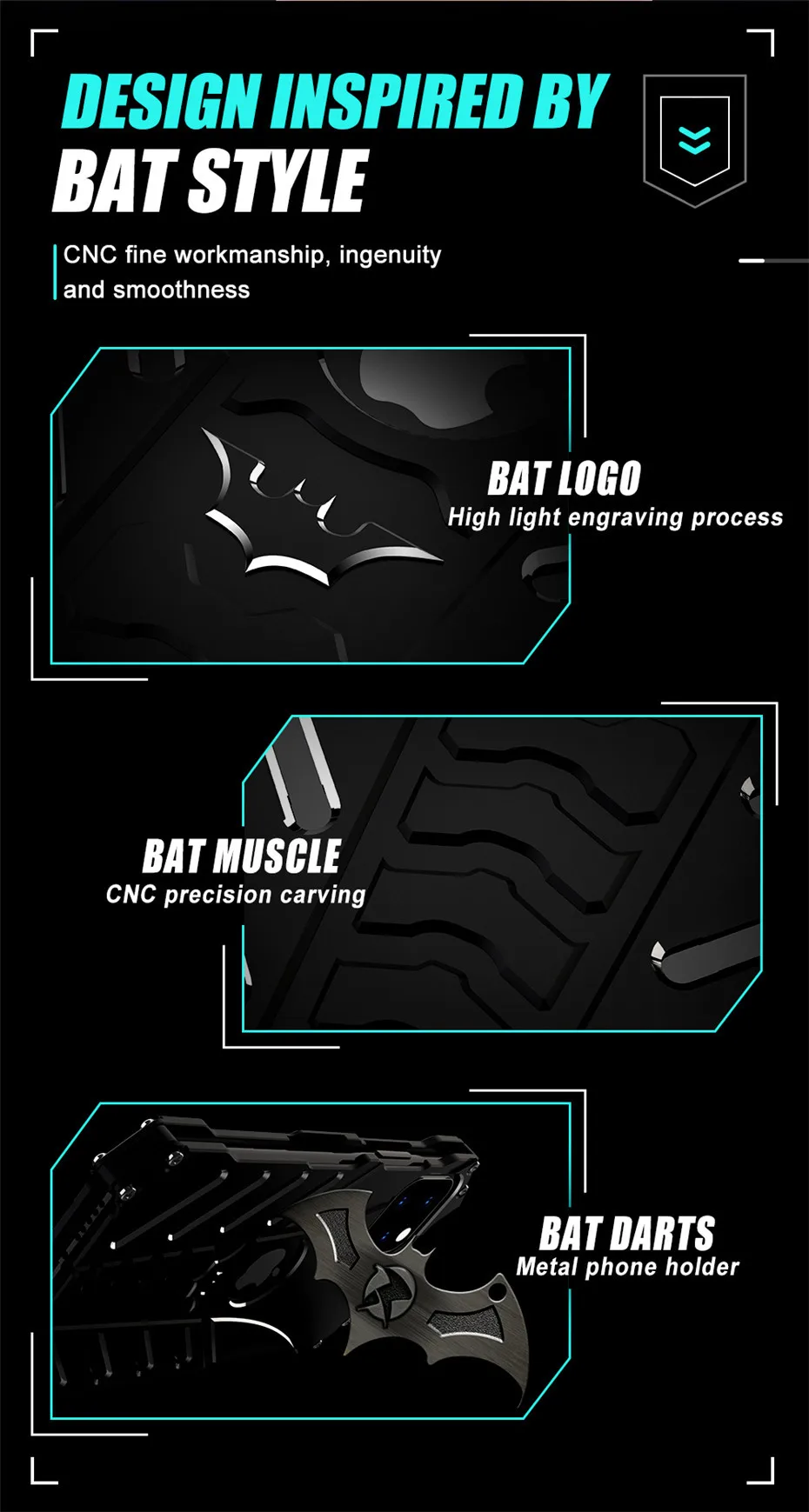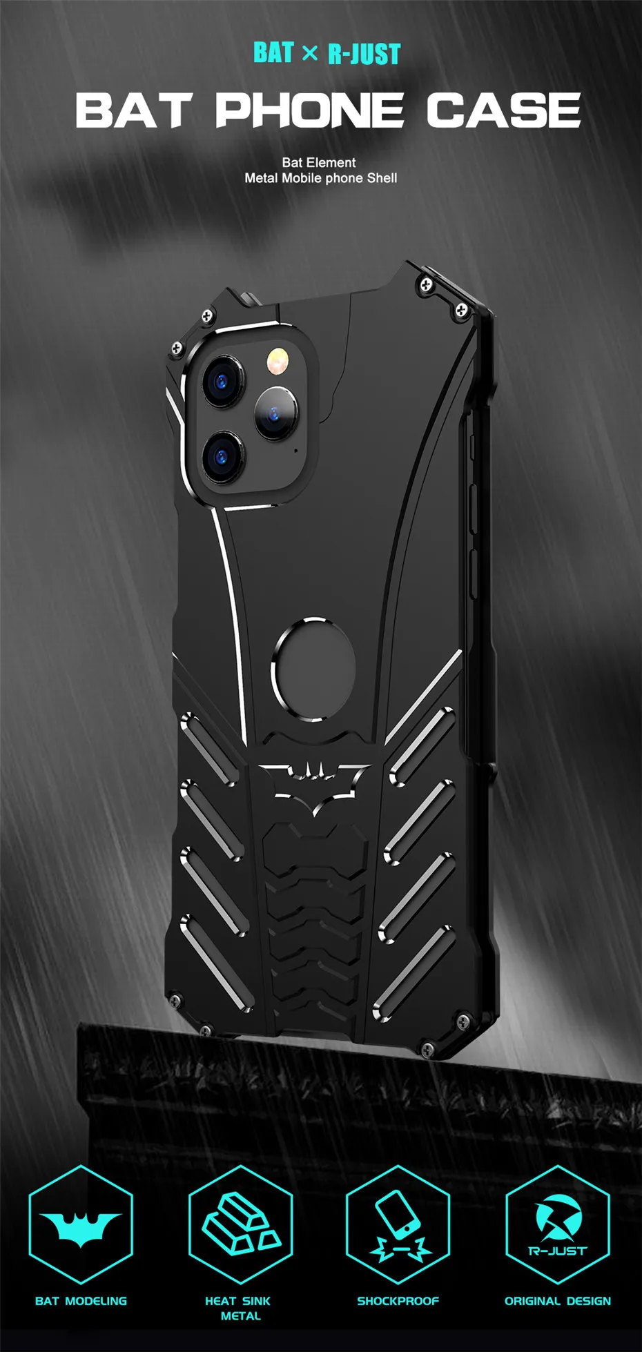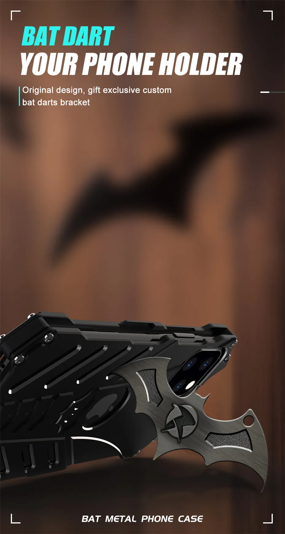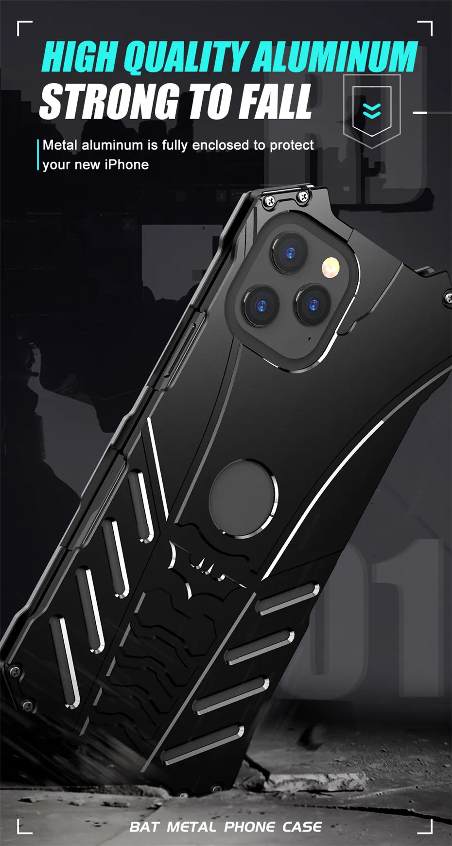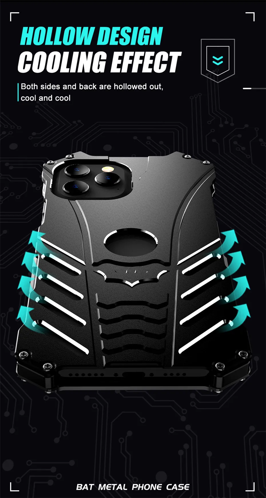 Aluminum Shell With Metal Holder Bracket Heat Dissipation Armor Shockproof Bat Case for iPhone 14 13 12 series