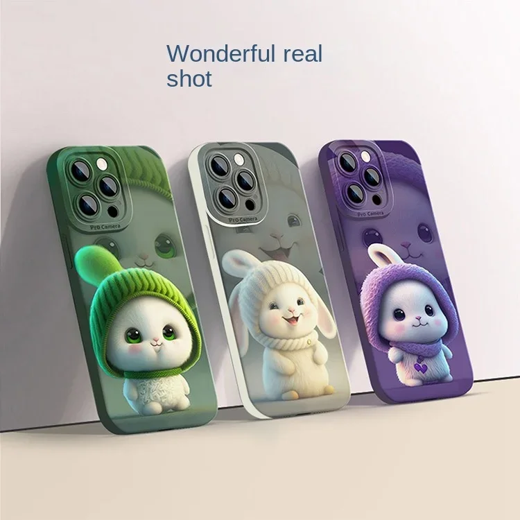 Angel Cartoon Cute Rabbit Shockproof Silicone PU Case for IPhone 15 14 13 12 series