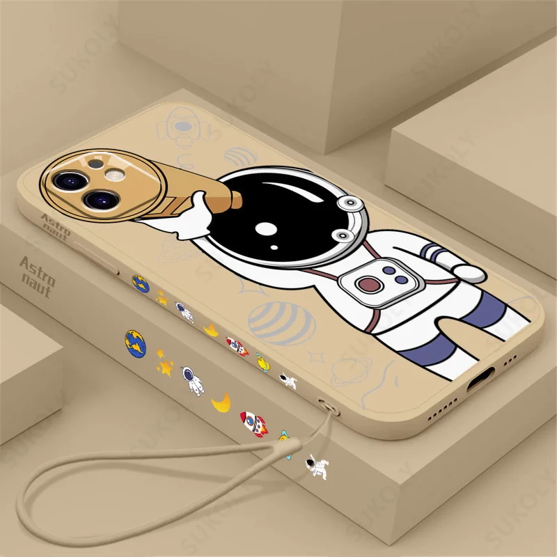 Astronaut Hand Lanyard Liquid Silicone Case for iPhone 13 12 11 Pro Max Mini