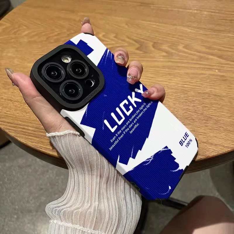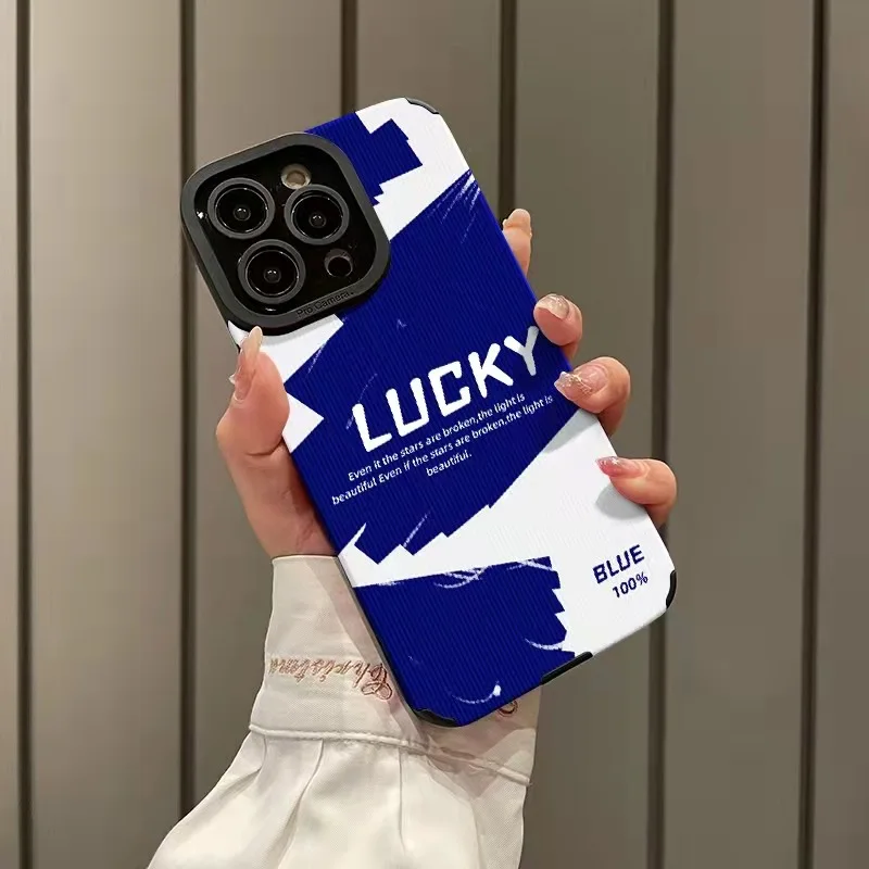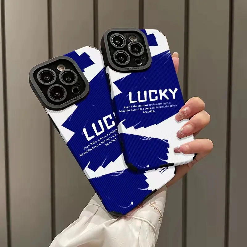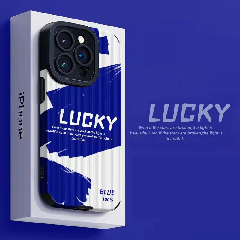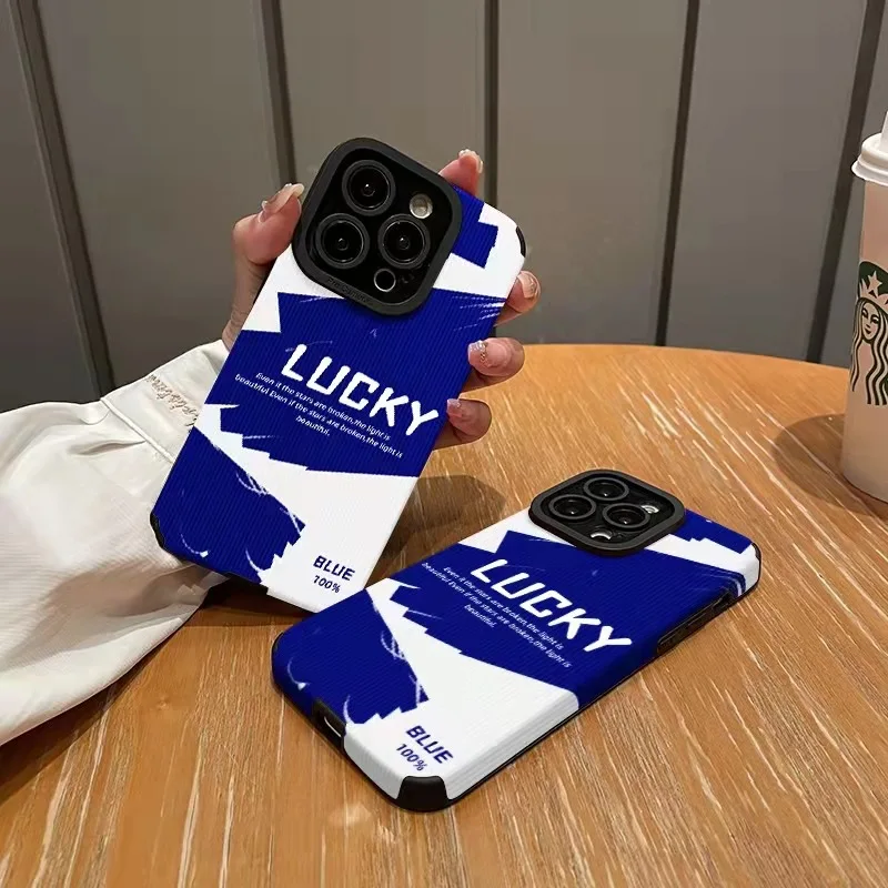 Black Blue Lucky Word TPU Case For iPhone 14 13 12 series