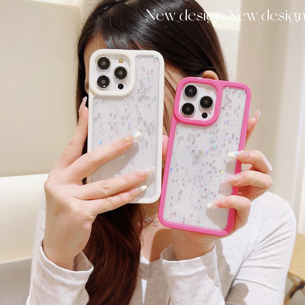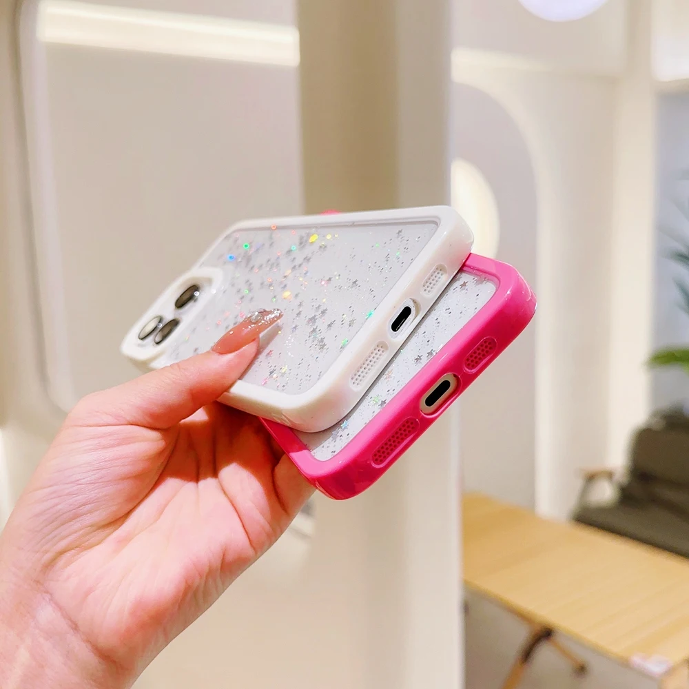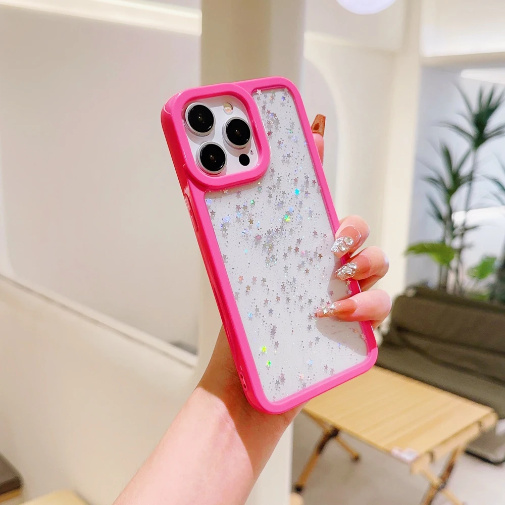 Candy Color Glitter Stars Sequin TPU Transparent Case For iPhone 15 14 13 12 series