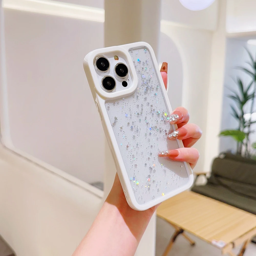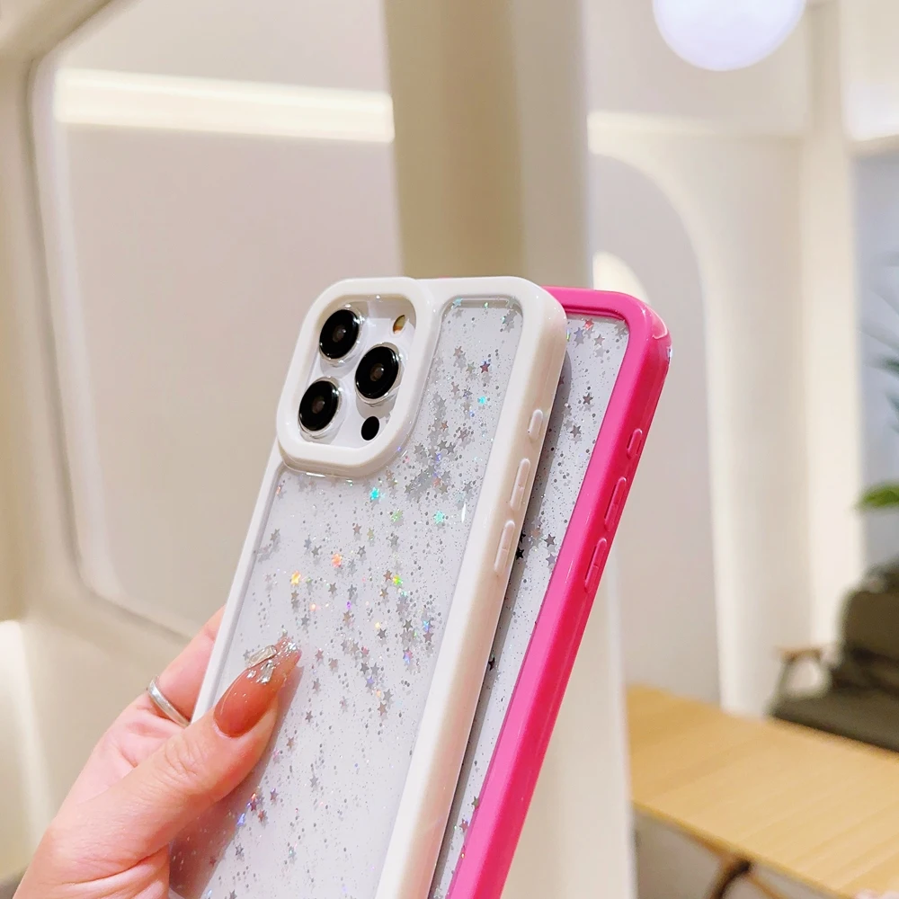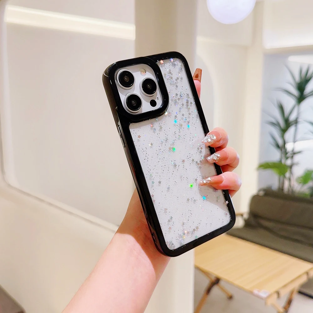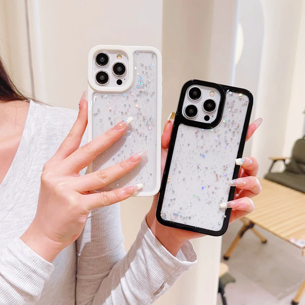 Candy Color Glitter Stars Sequin TPU Transparent Case For iPhone 15 14 13 12 series