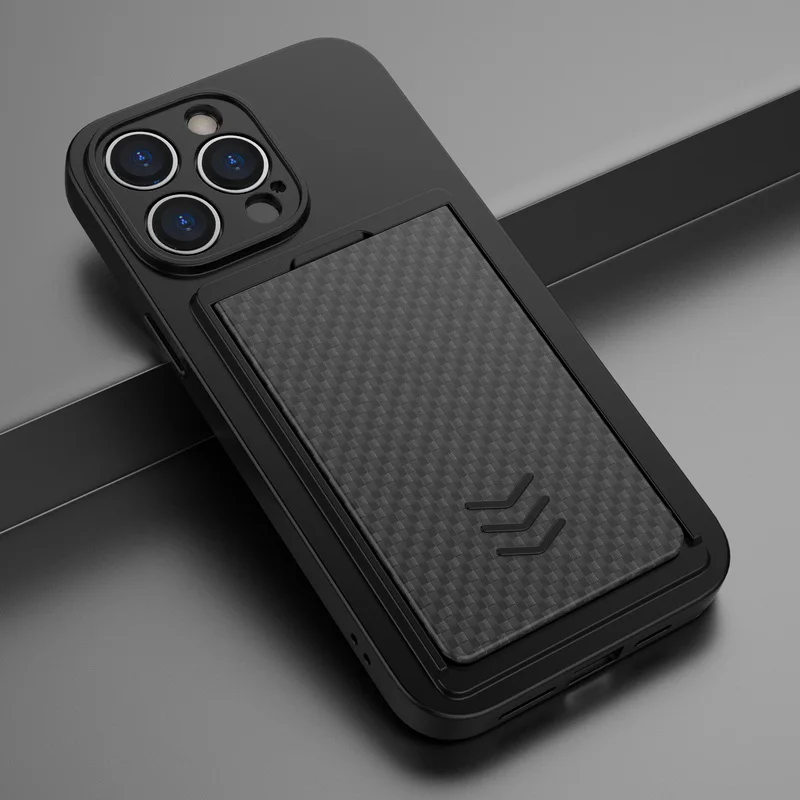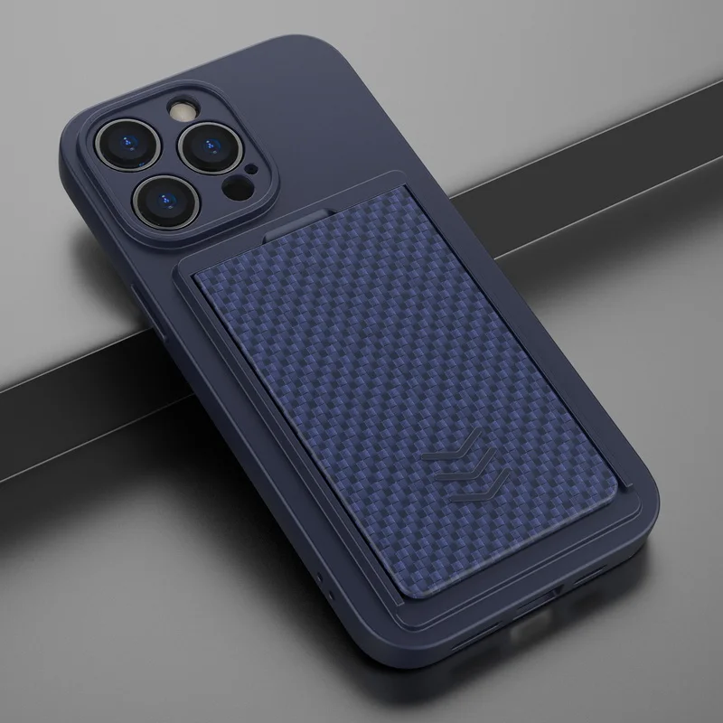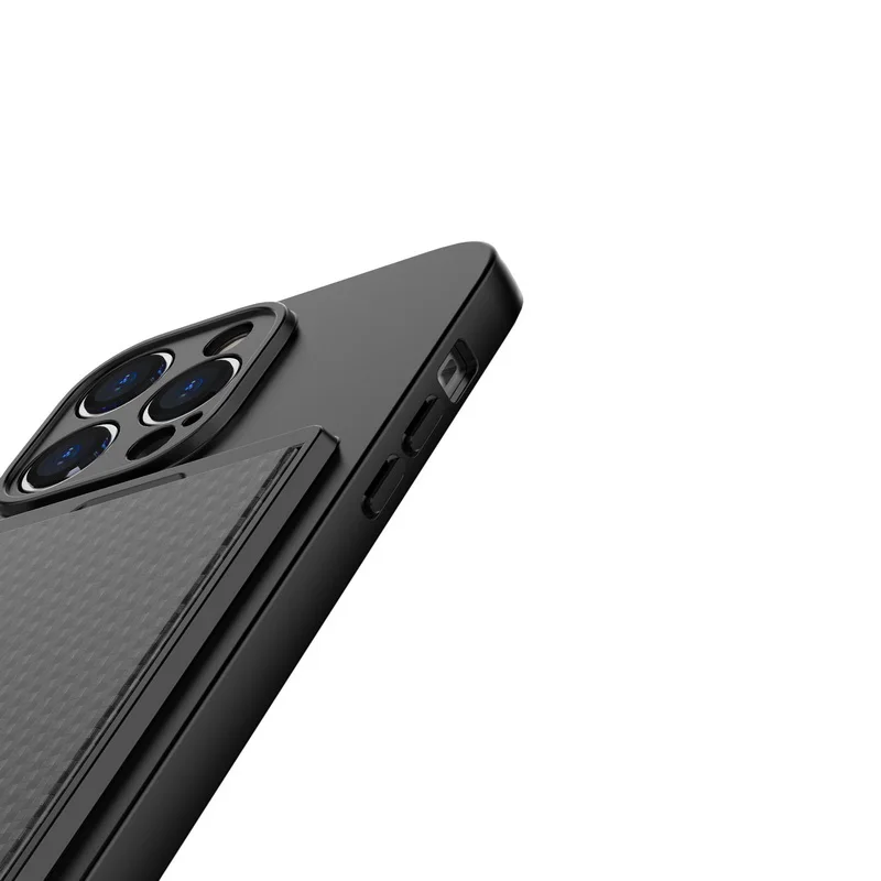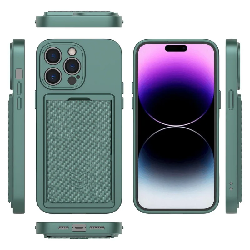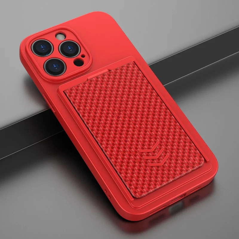 Carbon Fiber Solid Color Card Slots Shockproof Case With Camera Protection For iPhone 15 14 13 series