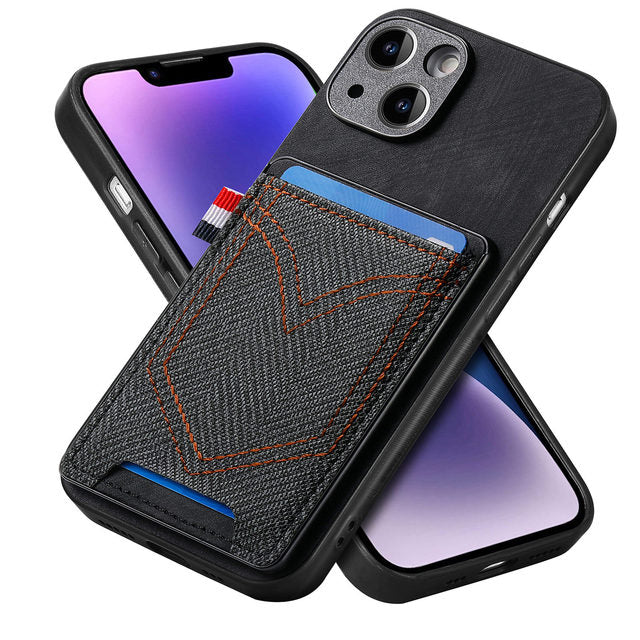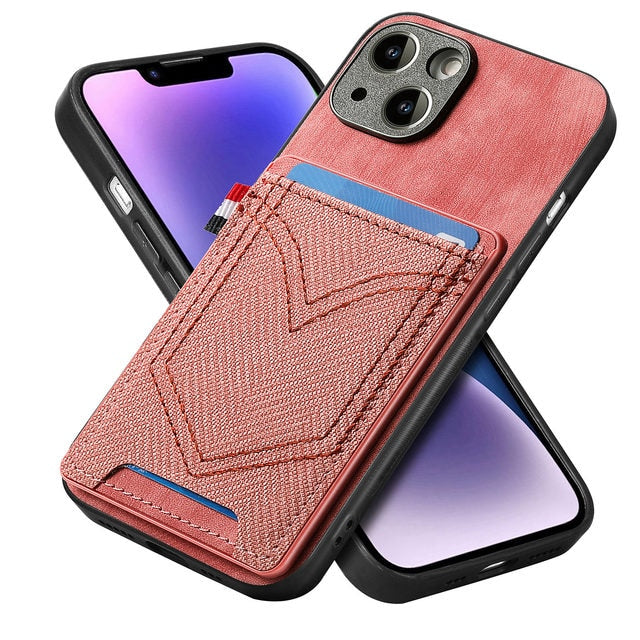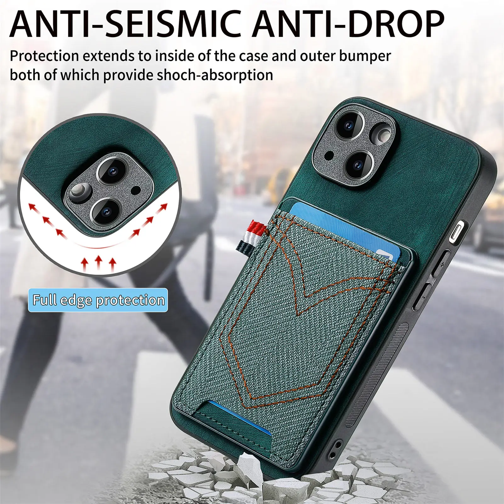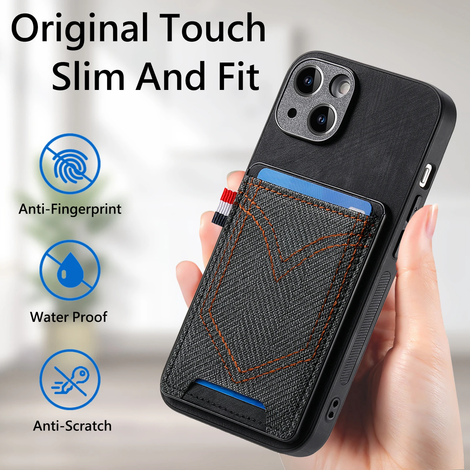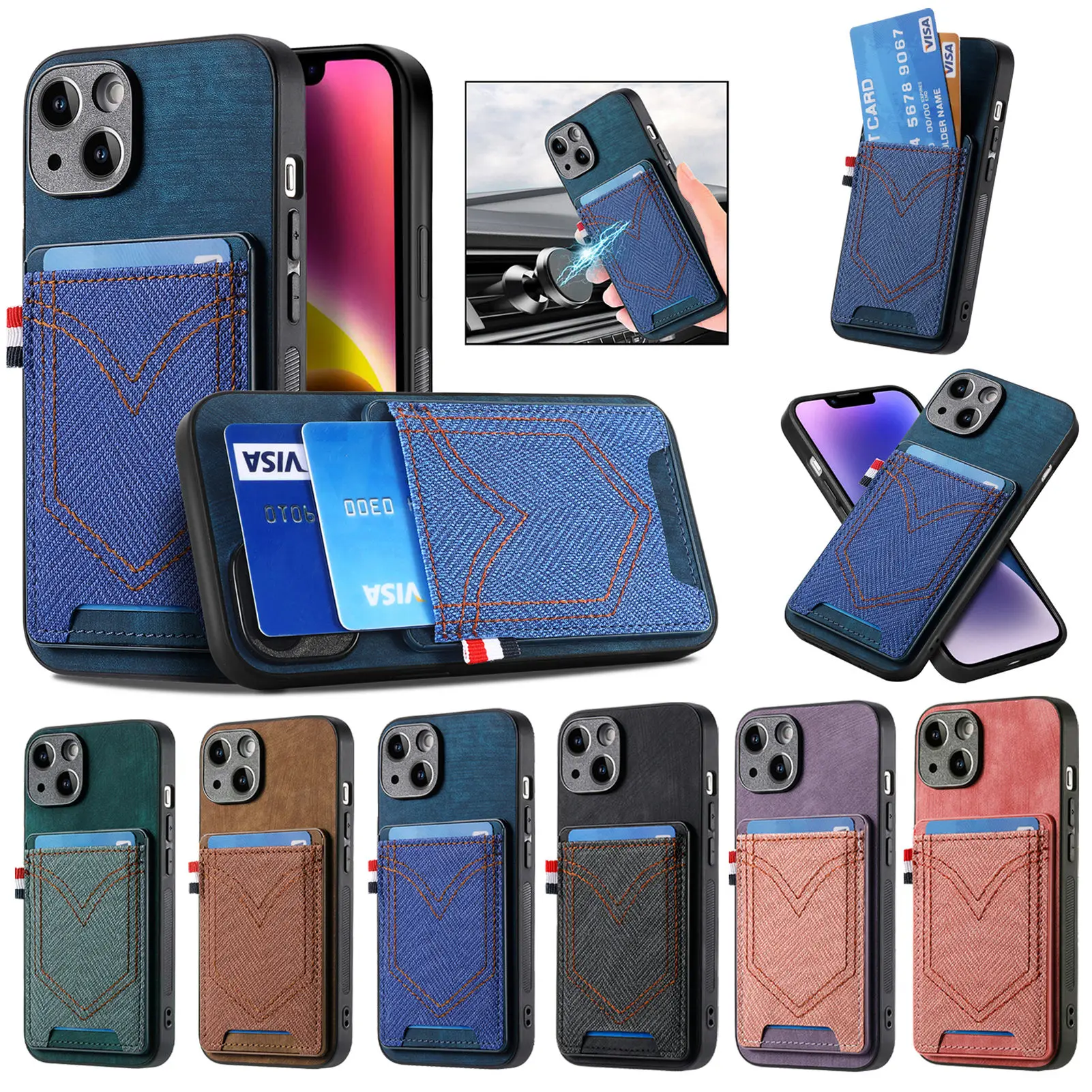 Cards Slot Wallet Leather Lens Protection Magnetic Denim Pocket Case for iPhone 14 13 12 series