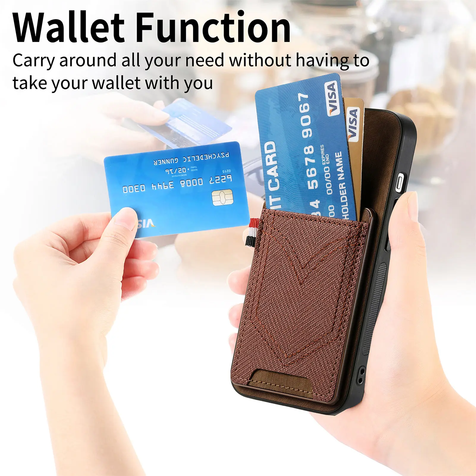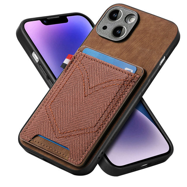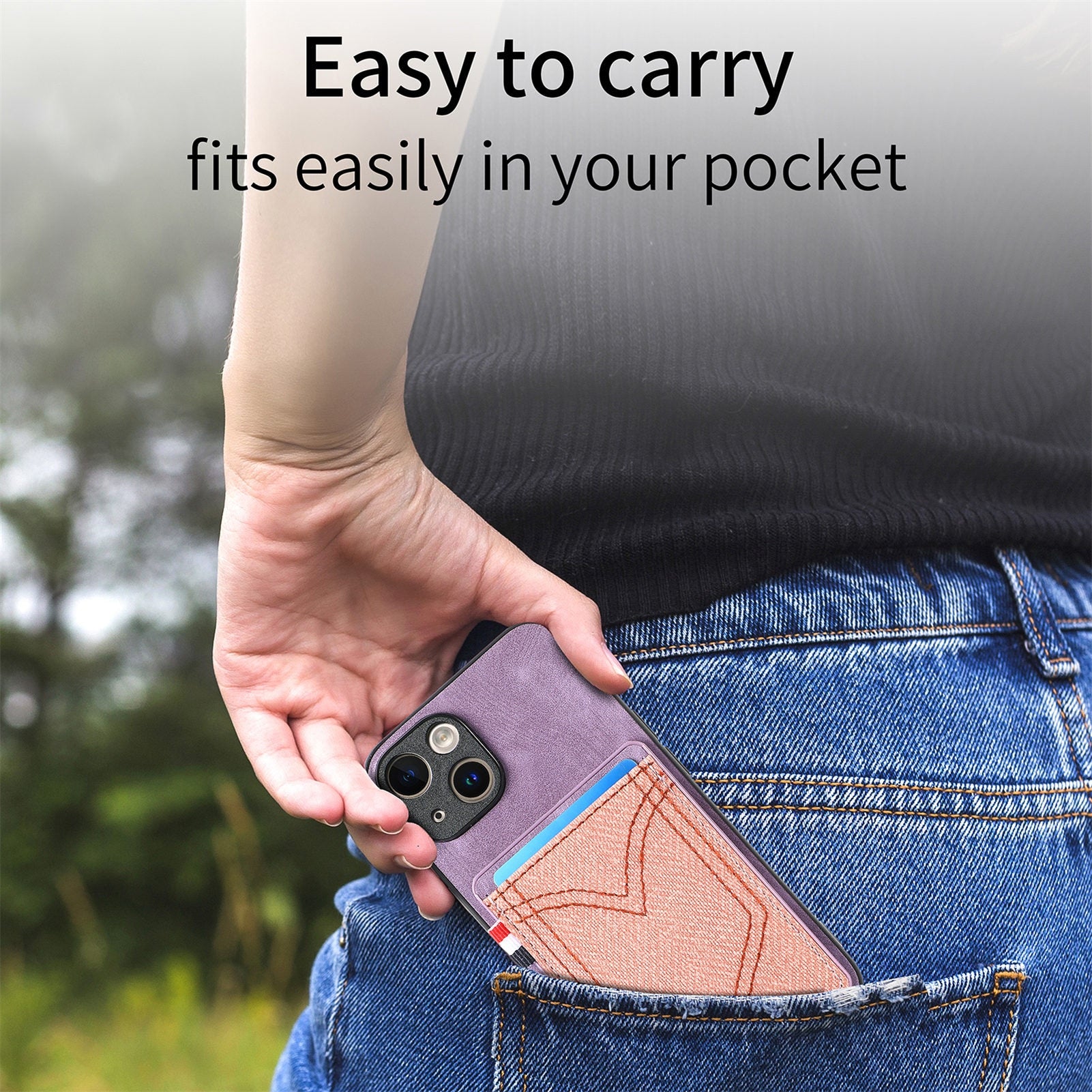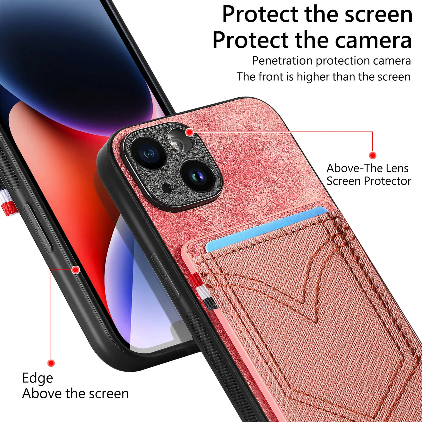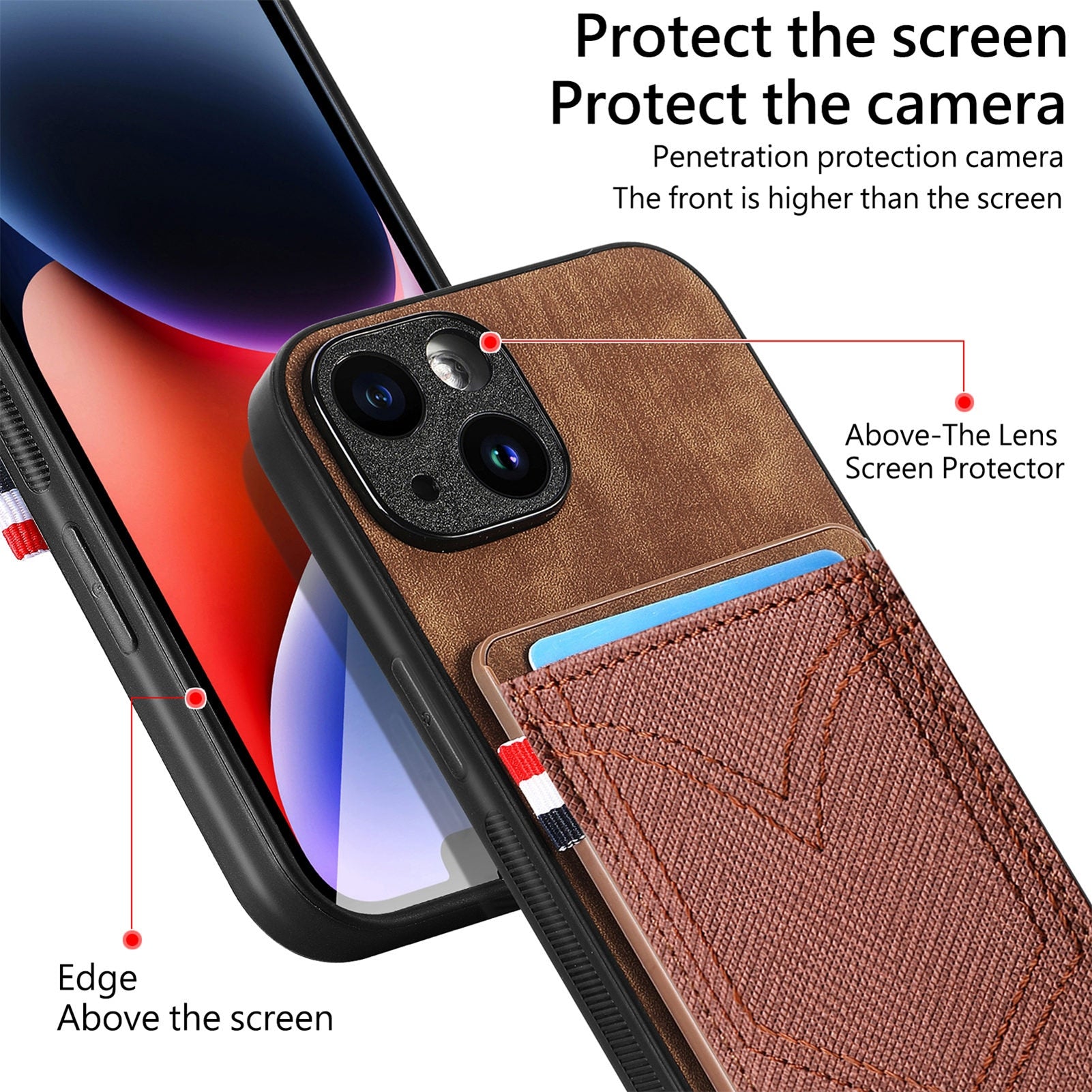 Cards Slot Wallet Leather Lens Protection Magnetic Denim Pocket Case for iPhone 14 13 12 series